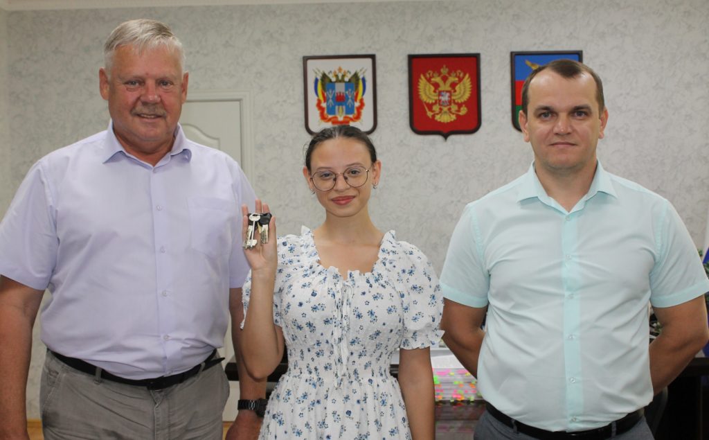 Глава администрации Заветинского района Юрий Величко и заведующий отделом строительства, архитектуры и жилищно-коммунального хозяйства администрации Заветинского района Александр Бондаренко поздравили девушку со значимым событием в жизни и выразили надежду что улучшение жилищных условий будет хорошим стартом в дальнейшей взрослой жизни.