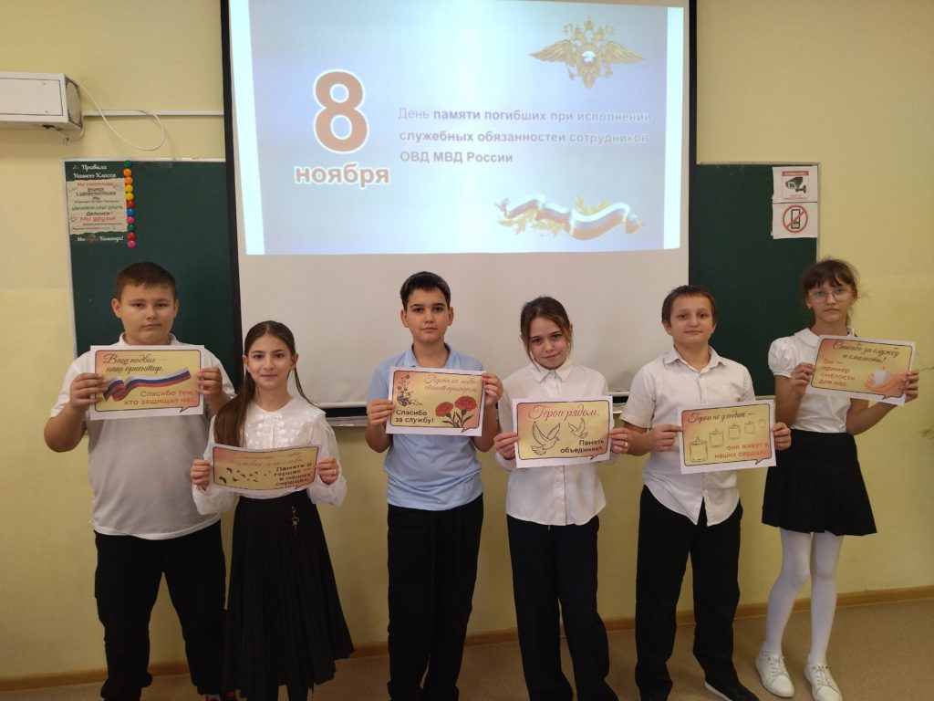 В ходе занятия школьники познакомились с реальными историями отважных действий представителей правоохранительных органов Российской Федерации, которые отдали жизни, выполняя служебные обязанности.