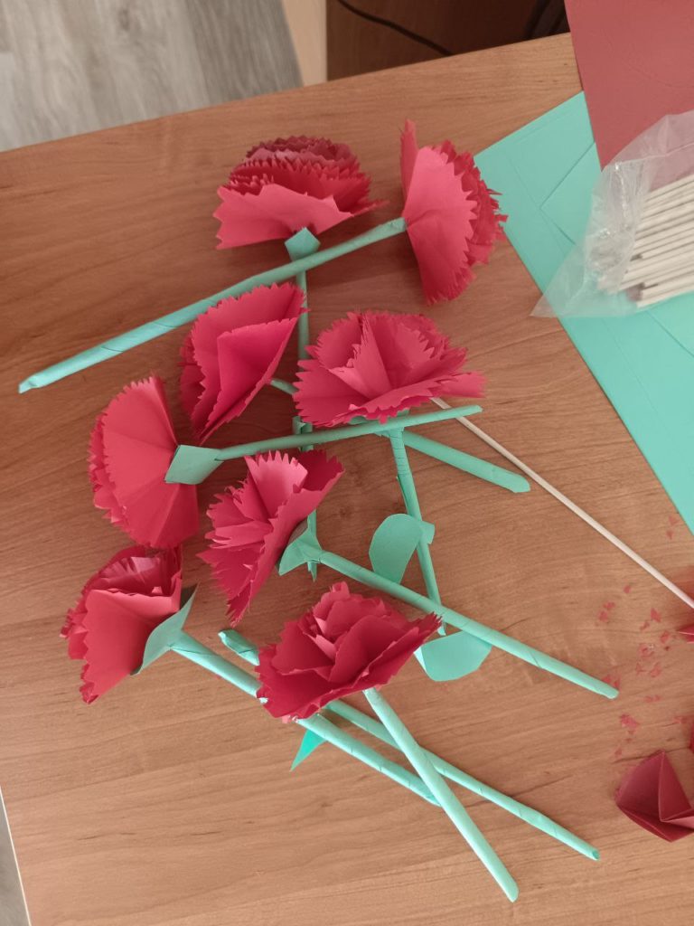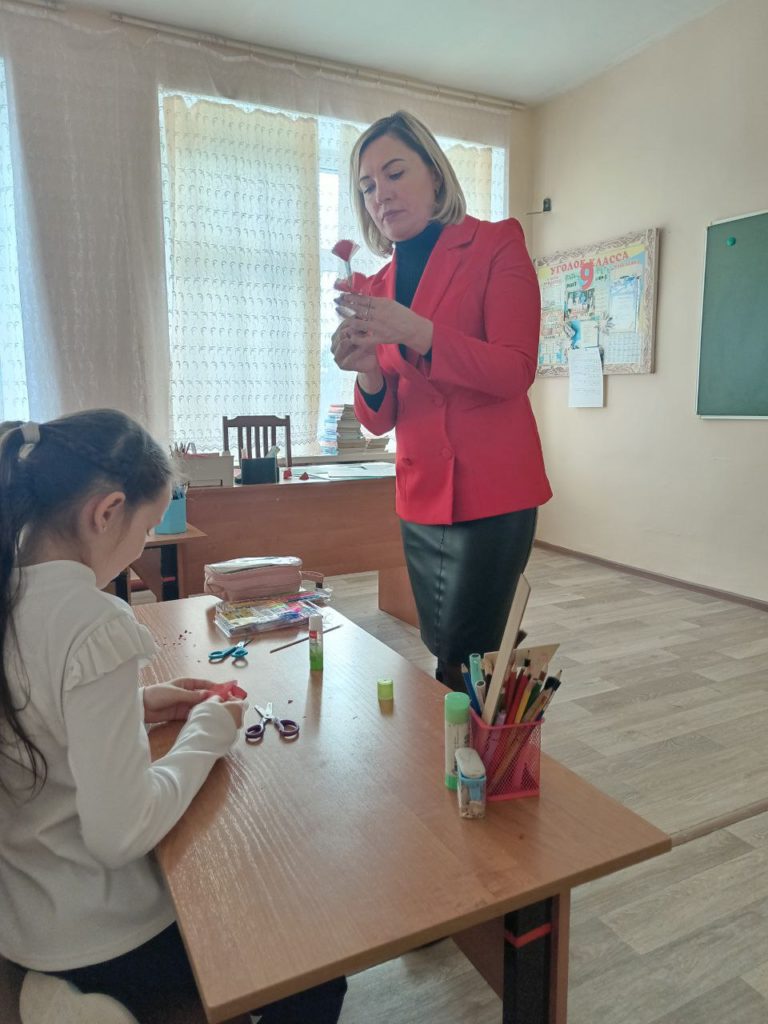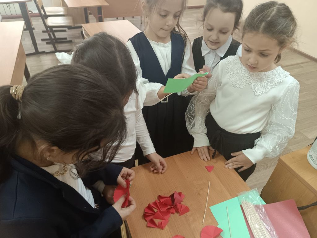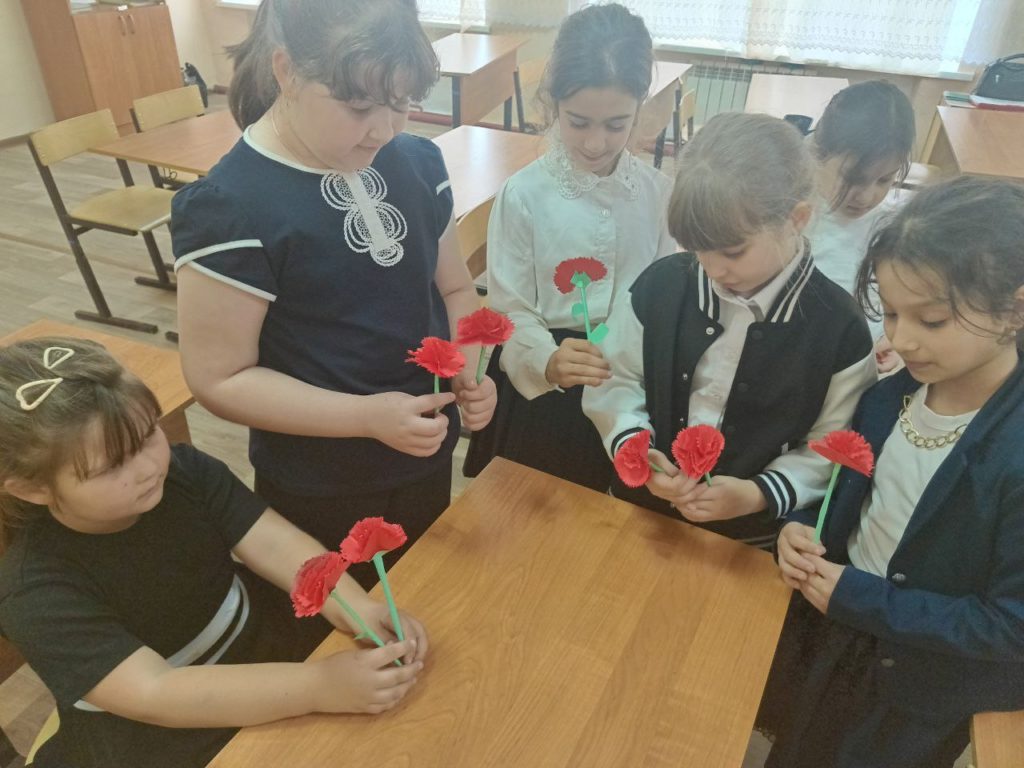 После теоретической части школьники перешли к практическим действиям. Им предложили создать собственный символ памяти — алую гвоздику. Каждый участник мастер‑класса вложил душу в свое изделие, старательно изготавливая цветок своими руками.
