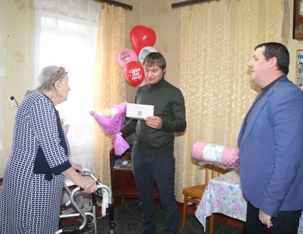 Виновнице торжества вручили приветственный адрес главы Заветинского района, цветы и подароки.