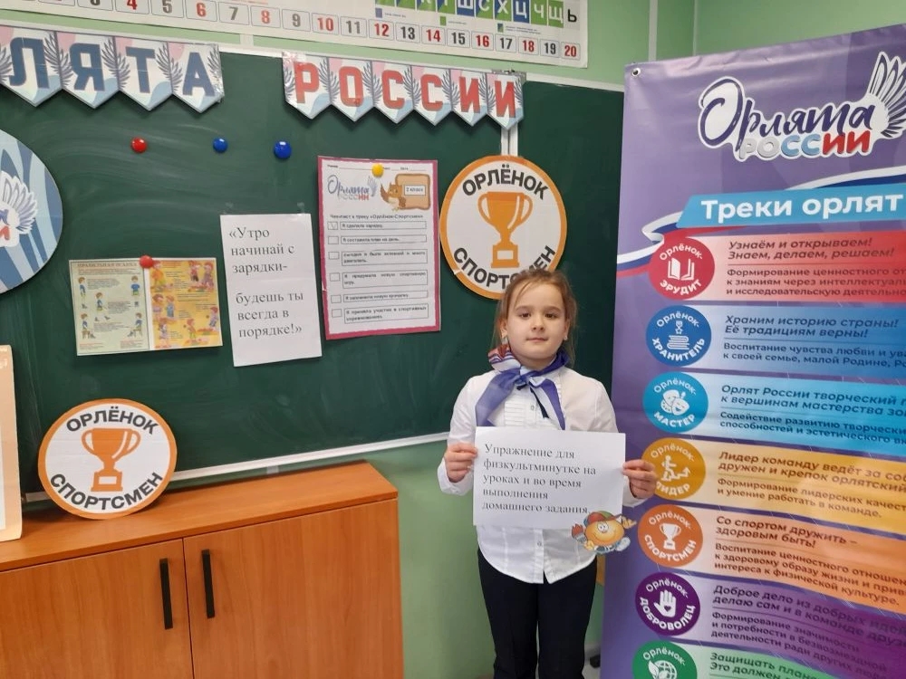 В Заветинской школе № 1 для ребят из 2 «Б» класса состоялось дебютное занятие в рамках трека «Орленок‑Спортсмен». Мероприятие прошло под мотивирующим девизом: «Утро начинай с зарядки — будешь ты всегда в порядке!».