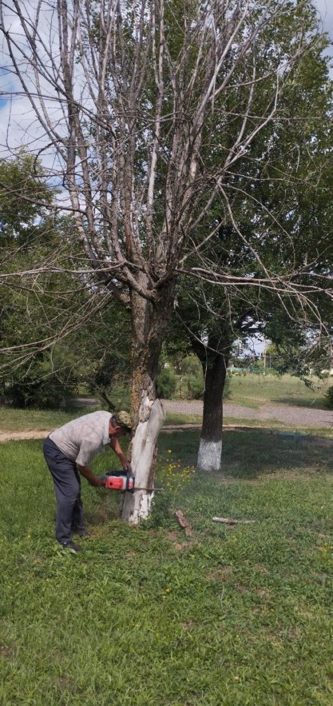 Каждый внес в это дело частичку своего тепла. Также в этот день были спилены сухие деревья и ветки в центре села.