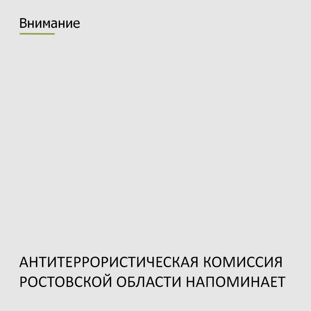 Антитеррористическая комиссия Ростовской области напоминает о порядке действий при возникновении террористических угроз и ЧС.