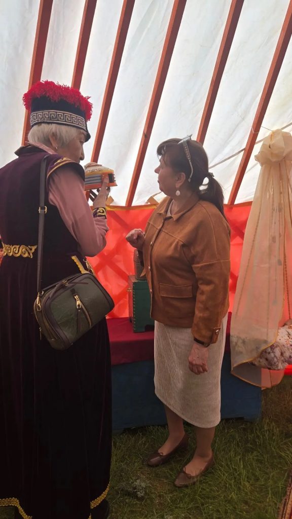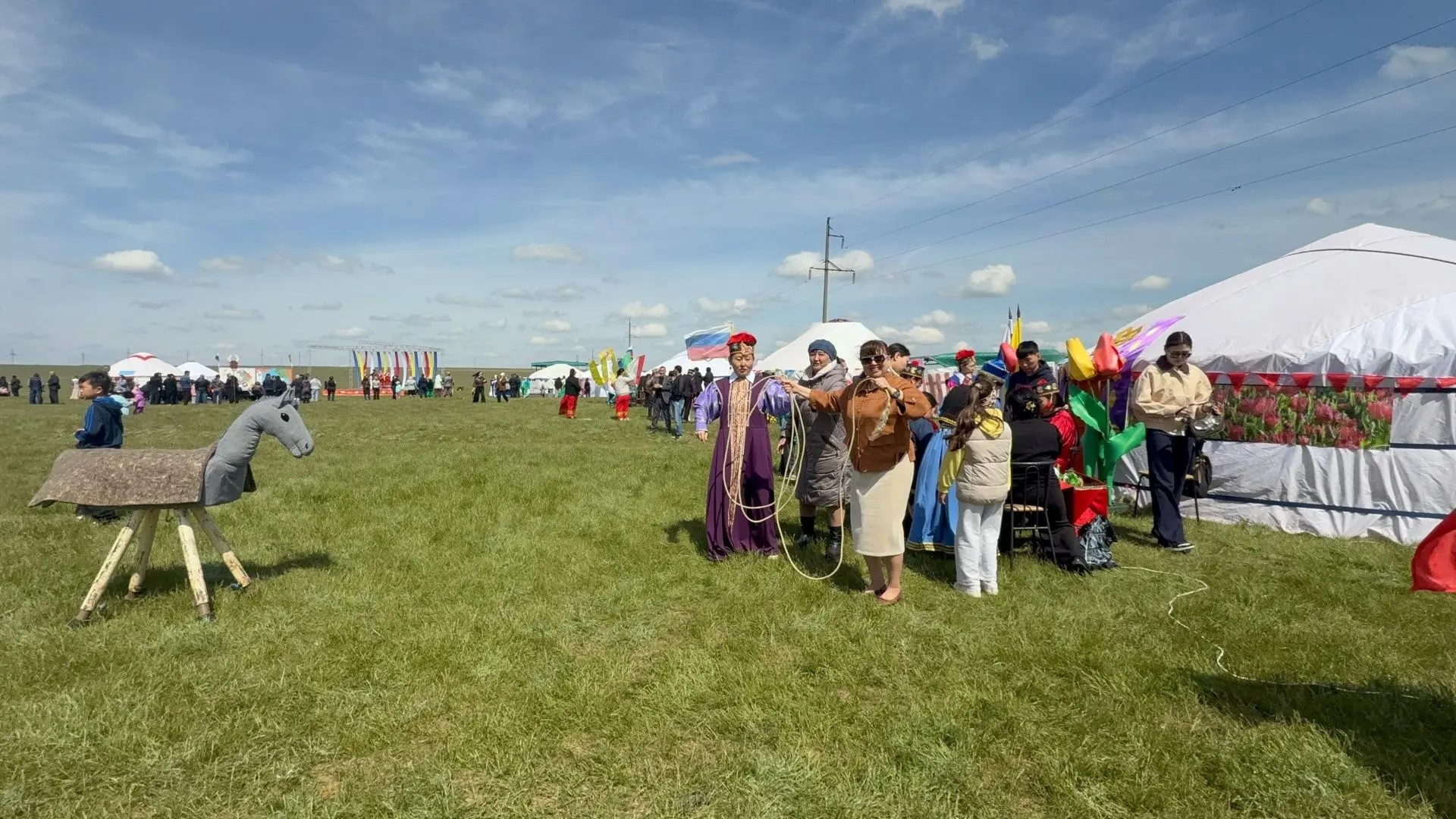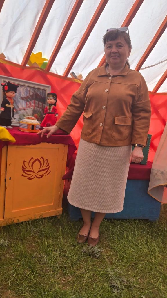 В ходе мероприятия наша землячка погрузилась в самобытную атмосферу калмыцкой культуры: осмотрела традиционную кибитку с аутентичным убранством, раскрывающим особенности быта местного народа. Кроме того, Елена Линченко приняла активное участие в тематических мастер‑классах — освоила основы создания кибитки и попрактиковалась в накидывании аркана.