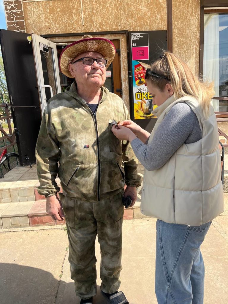 Сотрудники Дома культуры и администрации по сложившейся ежегодной традиции раздали георгиевские ленточки и показали, как правильно и оригинально их прикрепить.