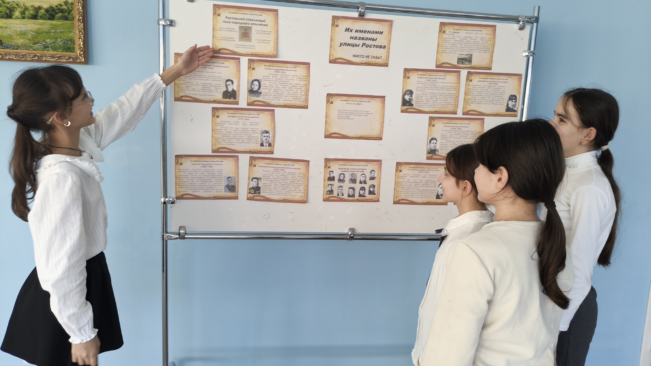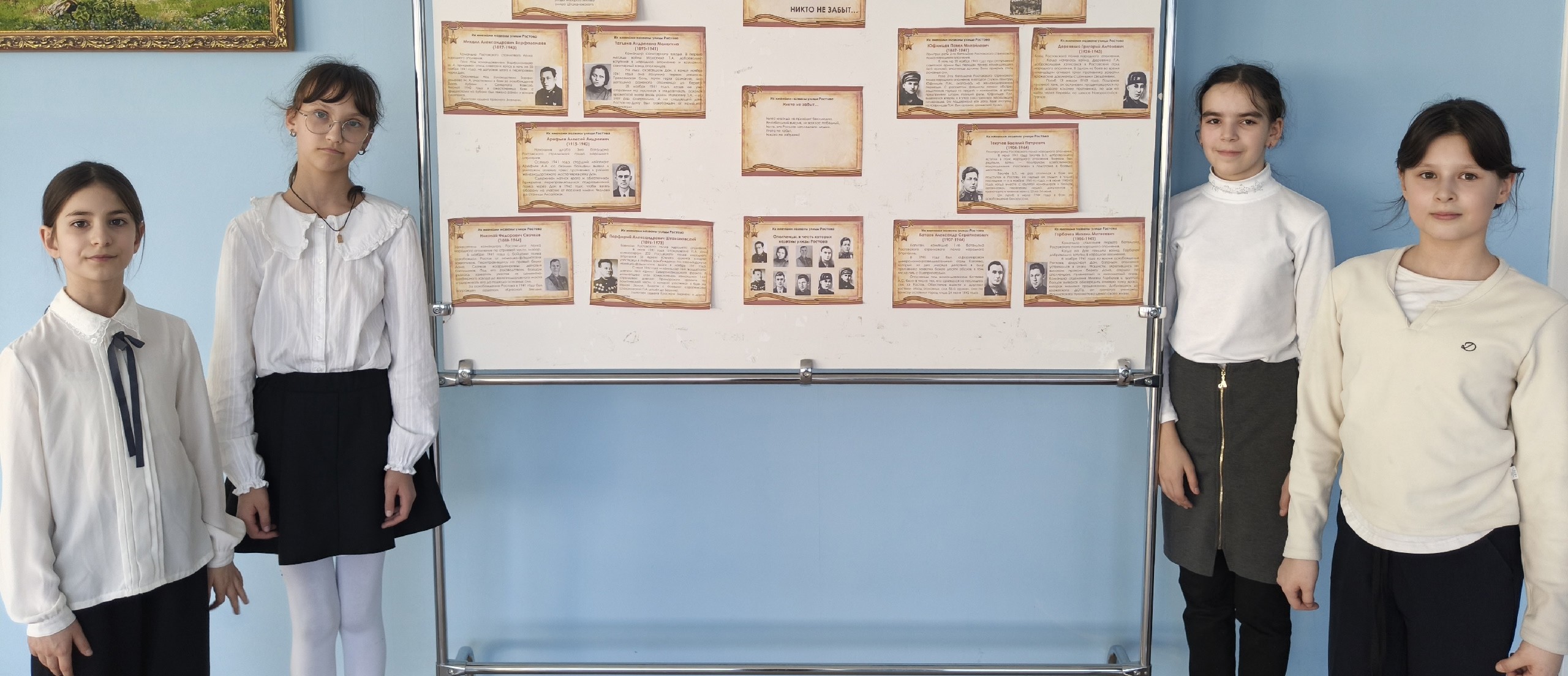 Советник директора по воспитанию Заветинской школы №2 совместно с активом обучающихся организовала выставку-портретов «Герои народов: защитники Ростова».