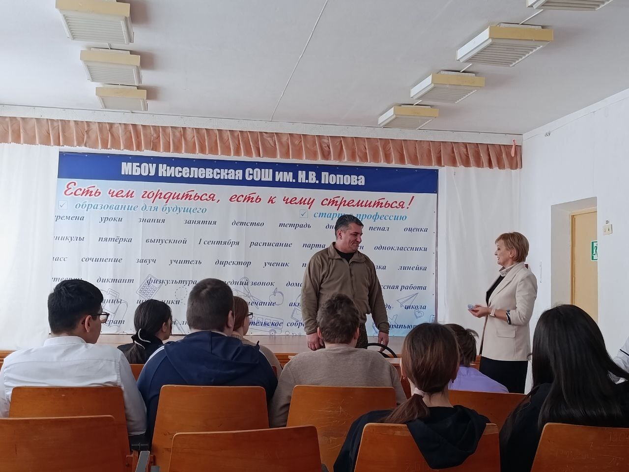 Обучающиеся задавали вопросы. Их интересовало всё: где живут, как питаются солдаты на спецоперации, получают ли военные письма от учеников.