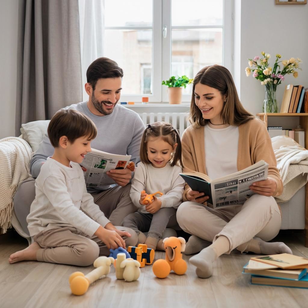 Семья с двумя детьми. Сгенерировано в Кандинский