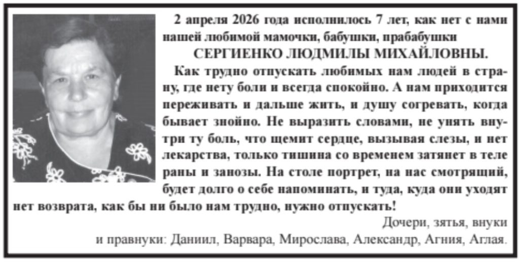 Новости Как трудно отпускать любимых нам людей 05.04.2026 11:14 Восход 0 97 Вспомним Сергиенко Людмилу Михайловну Теги: