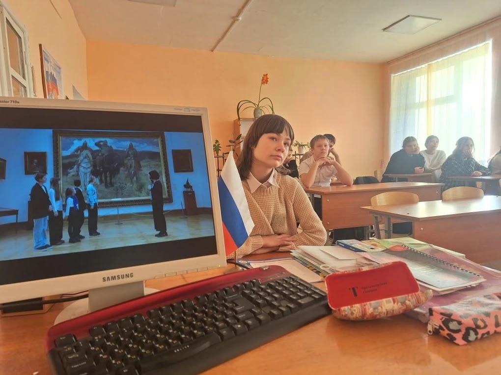 Особенно впечатлили школьников две картины: могучие «Три богатыря» Виктора Васнецова и трепетные «Грачи прилетели» Алексея Иванова. Ребята долго делились впечатлениями и спорили о смысле этих работ.