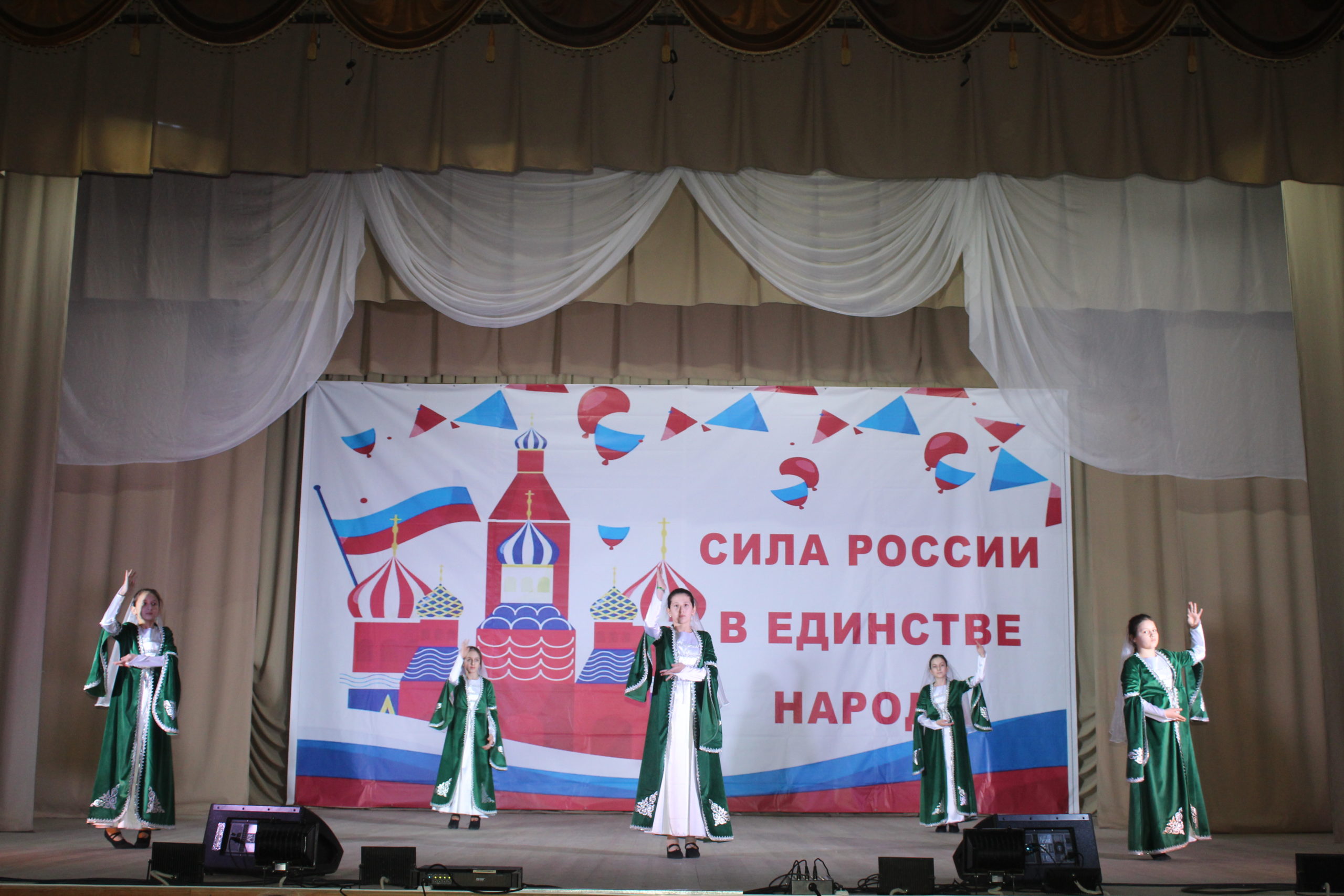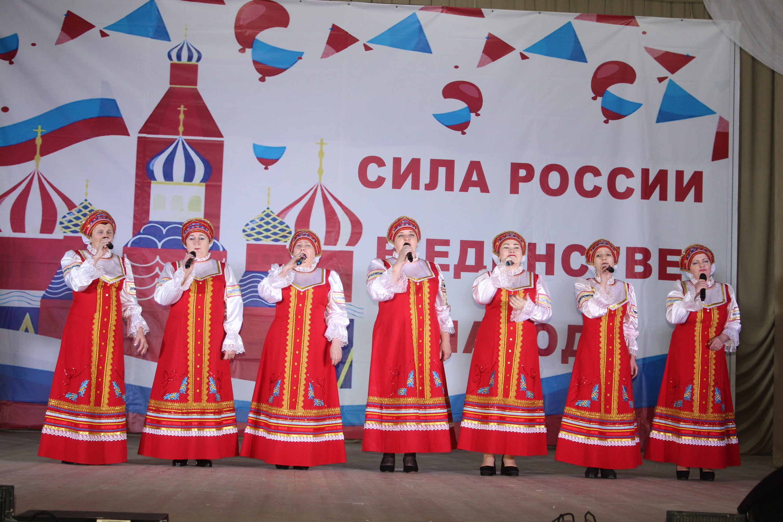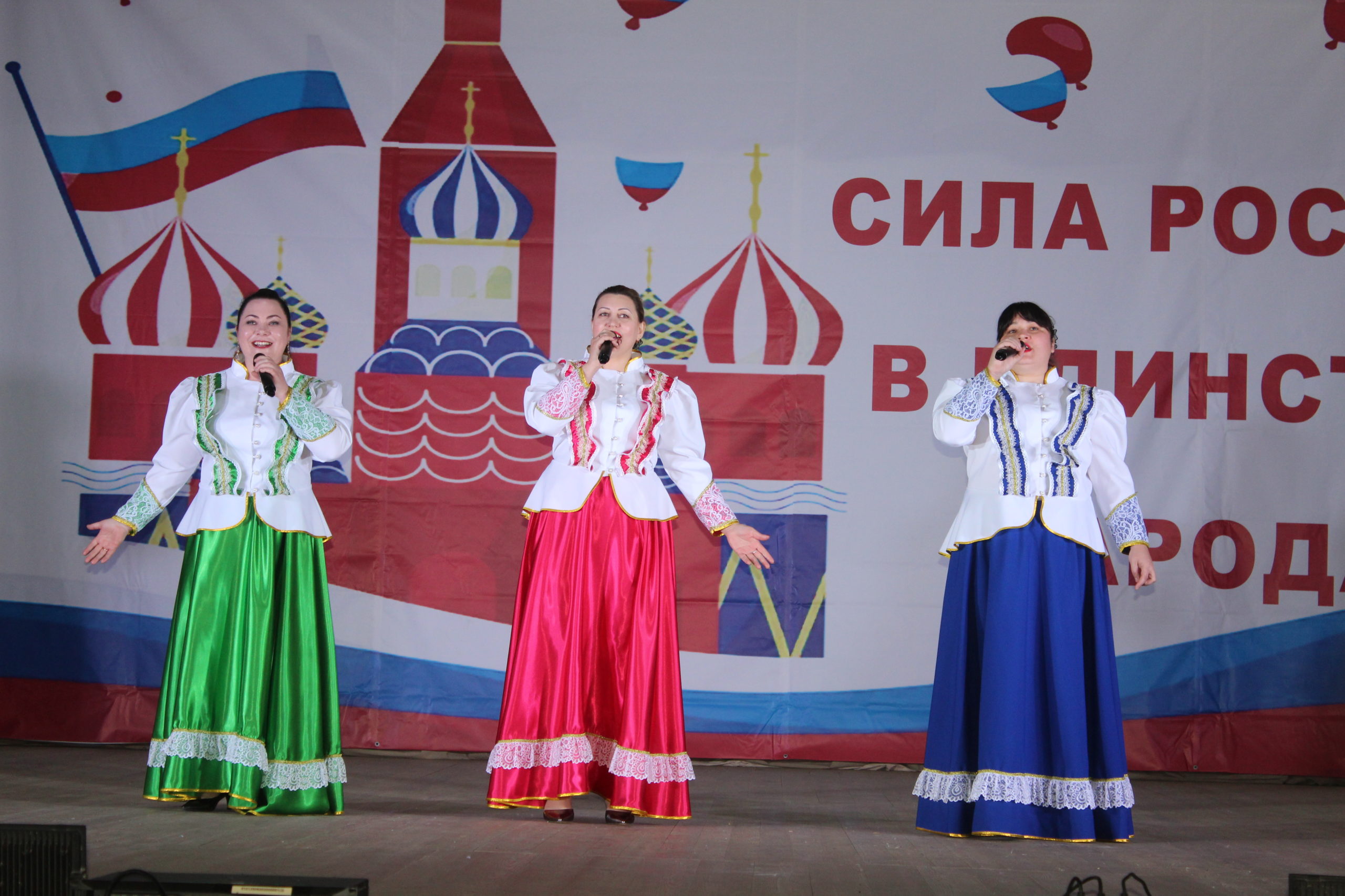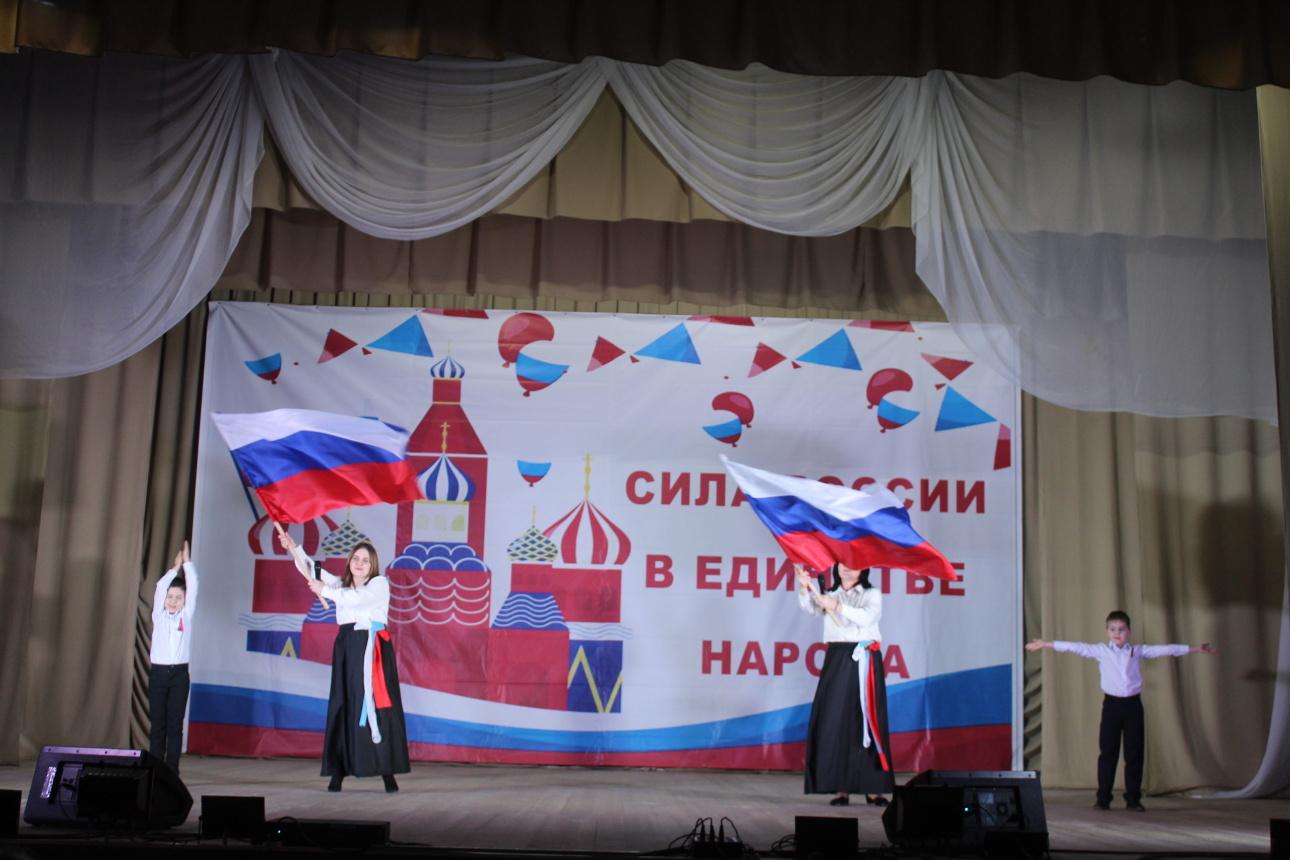 В нашем РДК мероприятие открылось с исполнения песни «Россия» в исполнении Е. Петренко, И. Кардашовой и А. Морозовой.
