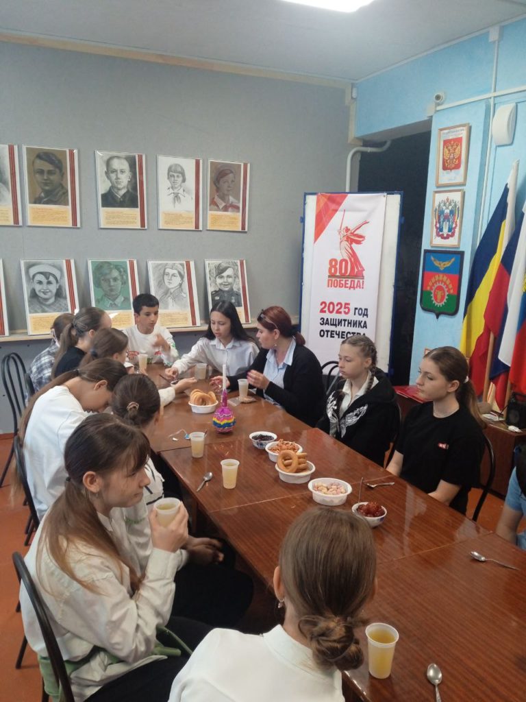 После практического занятия было организовано чаепитие с подарками. Для обучающихся 9 классов Заветинской СОШ № 2 и их классных руководителей Е.Ф. Рябухиной и Н.Ф. Лещенко проведено занятие «Знакомство с дневником труженика тыла Г.Ф. Данилова». Эту тему продолжила Л.Г. Диденко, зав. районным архивом Заветинского района. Она рассказала, о чем писала газета «Социалистическая степь» в годы Великой Отечественной войны.