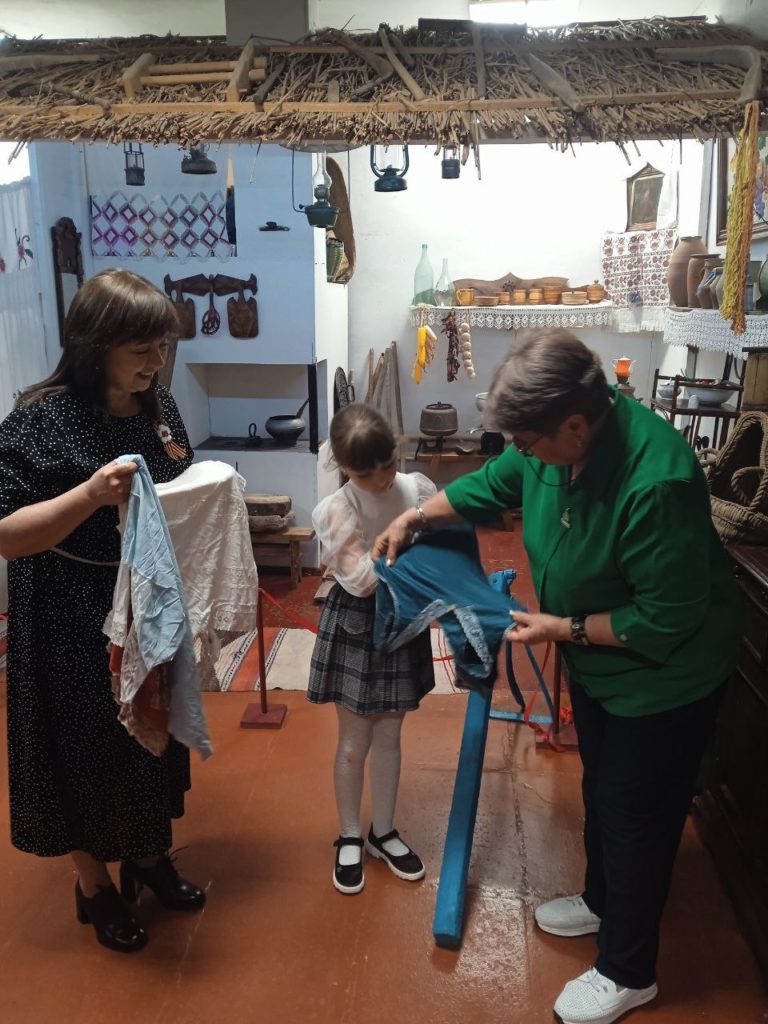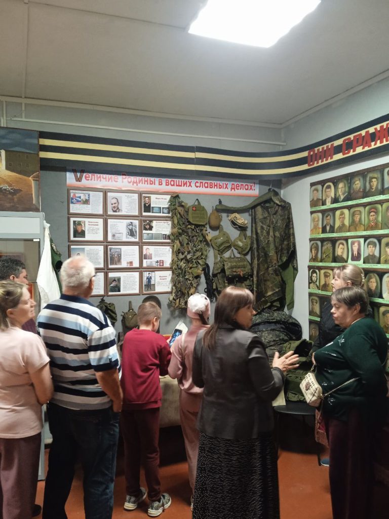 В музей пригласили волонтера А.Г. Губанову, которая рассказала о значении маскировочных сетей и показала, как надо резать ленты для них.