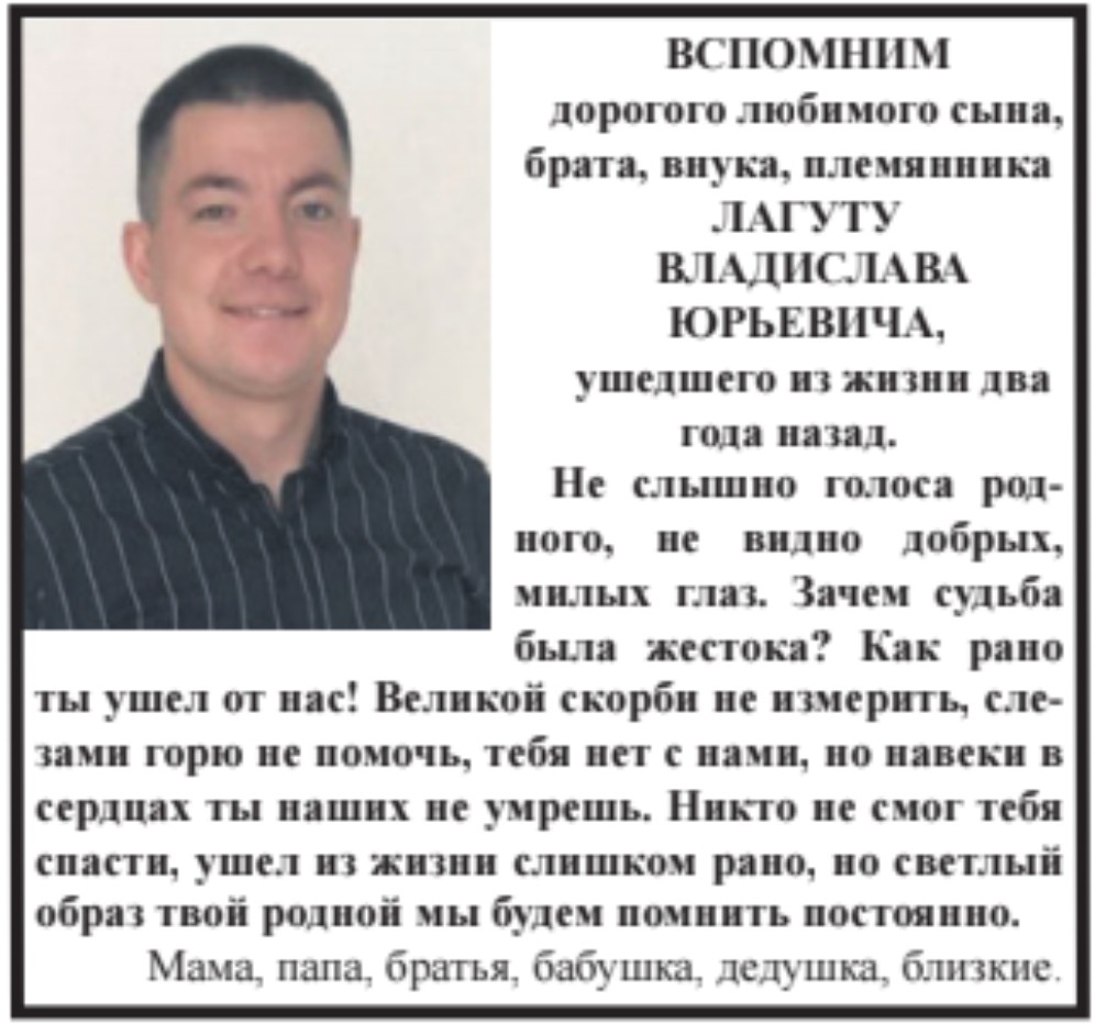 Новости Не слышно голоса родного, не видно добрых, милых глаз 27.12.2025 12:19 Восход 0 108 Вспомним Лагуту Владислава Юрьевича Теги: