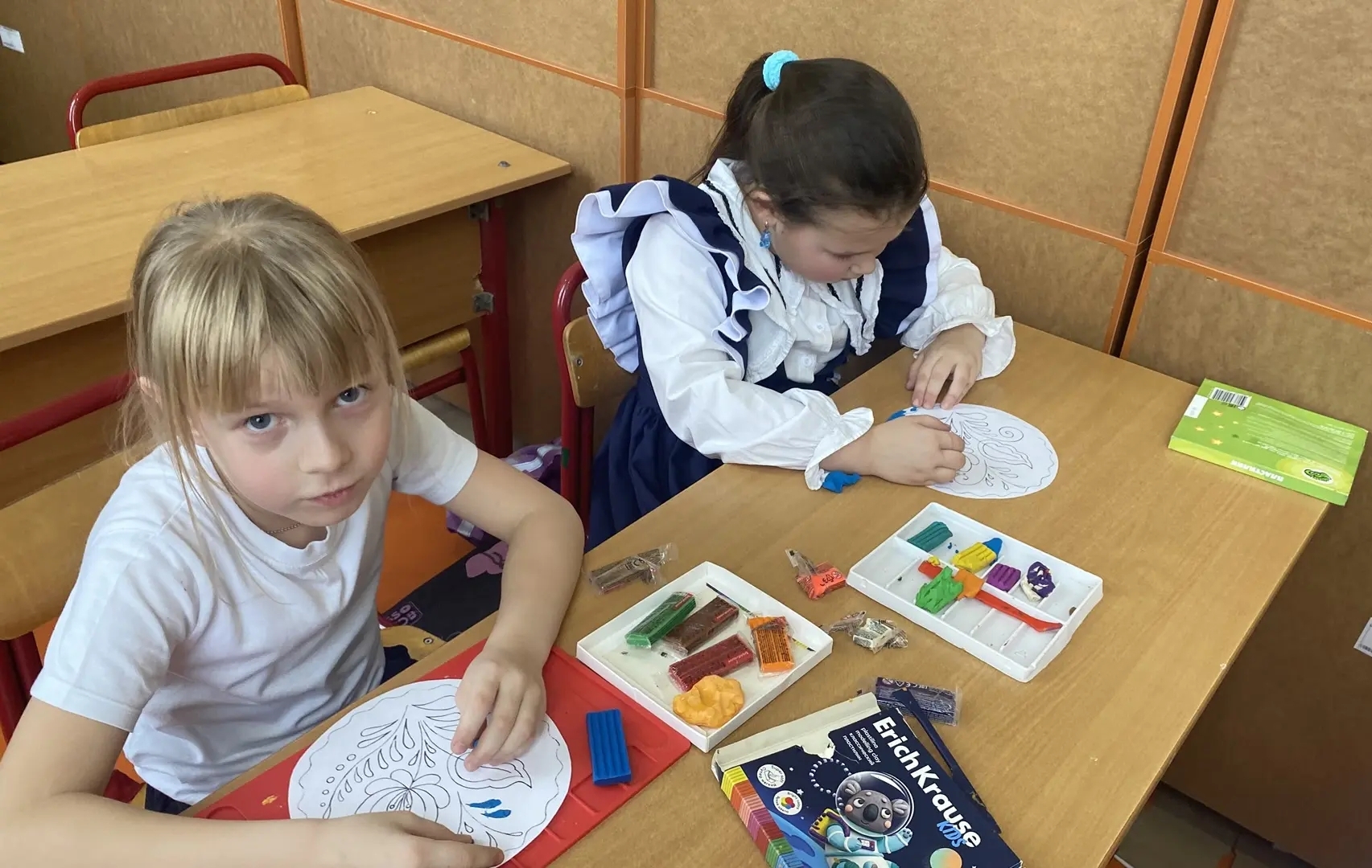 А после — самое интересное: творческая мастерская. Вот в руках ребятишек пластилин синего и голубого оттенков. Ребята с азартом лепили свои уникальные гжельские узоры, вдохновляясь старинными мотивами.
