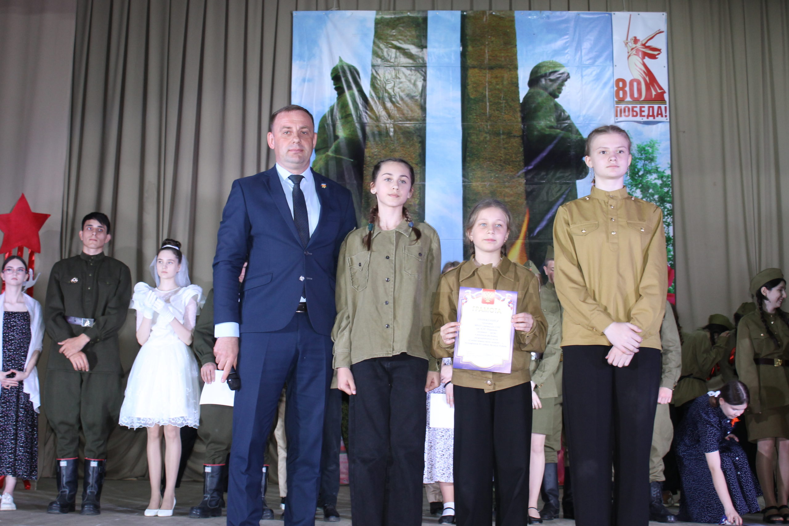 В Заветинском РДК состоялся районный фестиваль среди образовательных учреждений «О войне не мало песен сложено», посвященный 80-летию Великой Победы.