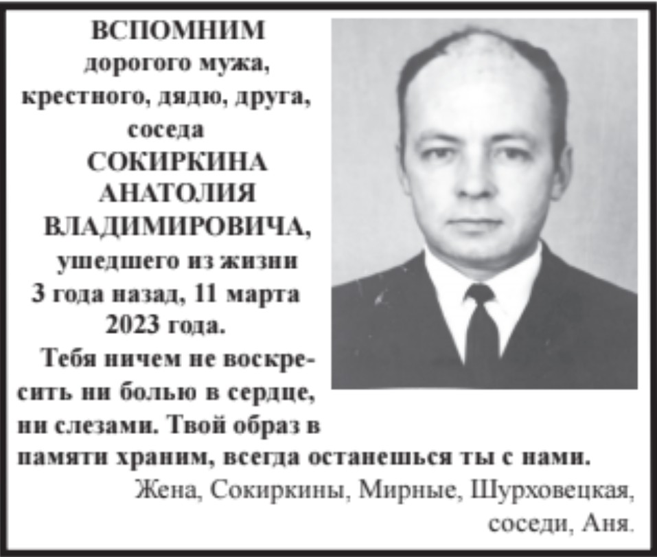 Новости Образ в памяти храним 15.03.2026 09:47 Восход 0 98 Вмпомним Сокиркина Анатолия Владимировича Теги: