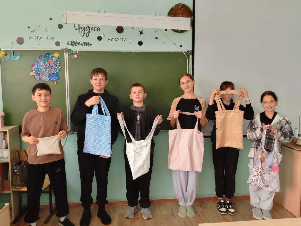 В рамках урока труда учащиеся шестого класса Савдянской школы взялись за интересный проект — пошив сумок‑шопперов.