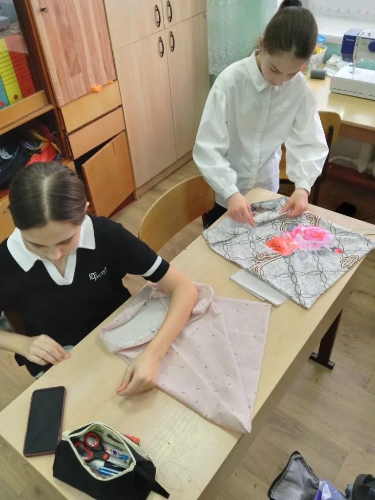 На каждом этапе работы ребята приобрели новые умения: грамотно раскроили ткань, аккуратно выполнили швы вручную и на швейной машине, завершили процесс влажно‑тепловой обработкой.
