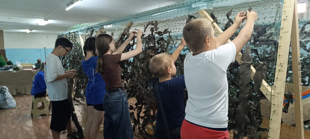 Первые не словом, а делом: Активисты Движения Первых вместе с наставниками сплели маскировочные сети для солдат