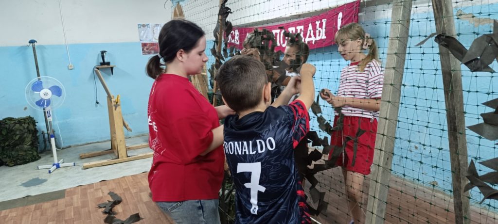 Активисты местного отделения Движения Первых совместно с наставниками провели благотворительное мероприятие по плетению маскировочных сетей для солдат, участвующих в боевых действиях.