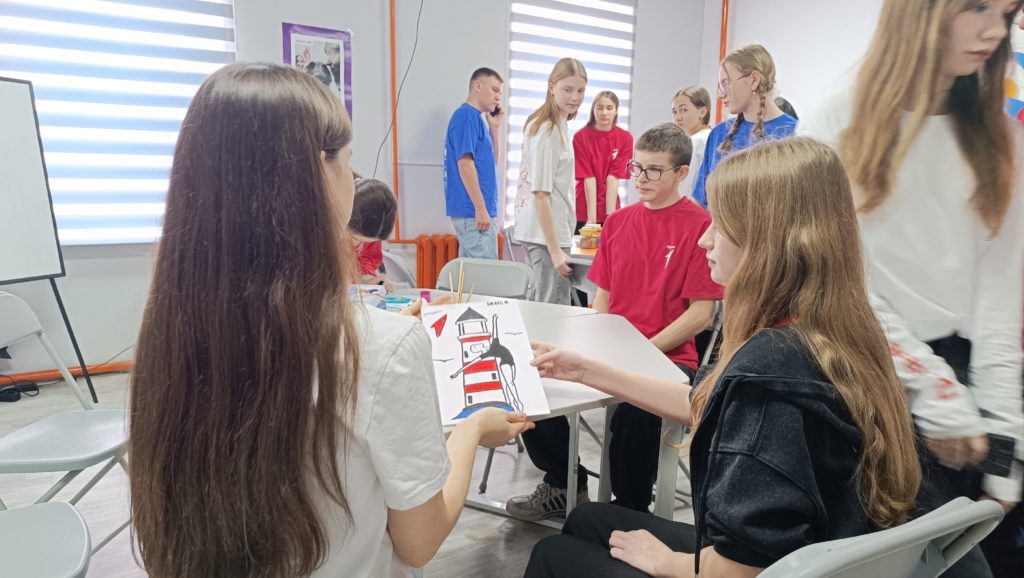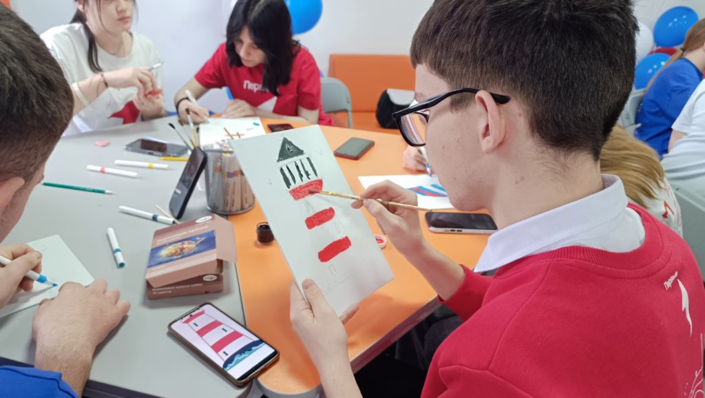Одной из самых ярких частей встречи стало создание картин маяков, символизирующих направления работы первичных отделений. Ребята с энтузиазмом взялись за кисти и краски, воплощая свои идеи на холсте.