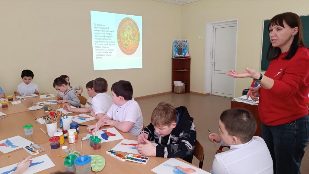 В отделении Движения Первых Заветинского района состоялось творческое мероприятие — мастер‑класс «Севастопольская роспись», приуроченный ко Дню воссоединения Крыма с Россией.