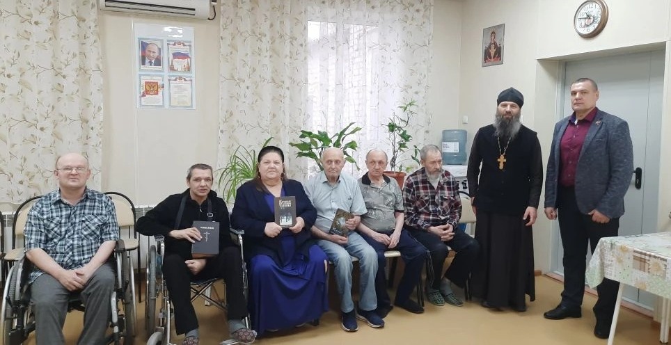 В Заветинском дом-интернате для престарелых и инвалидов в рамках мероприятия ко Дню православной книги настоятель храма иерей Михаил подарил инициаторам данного мероприятия среди подопечных православные книги на память о встрече.