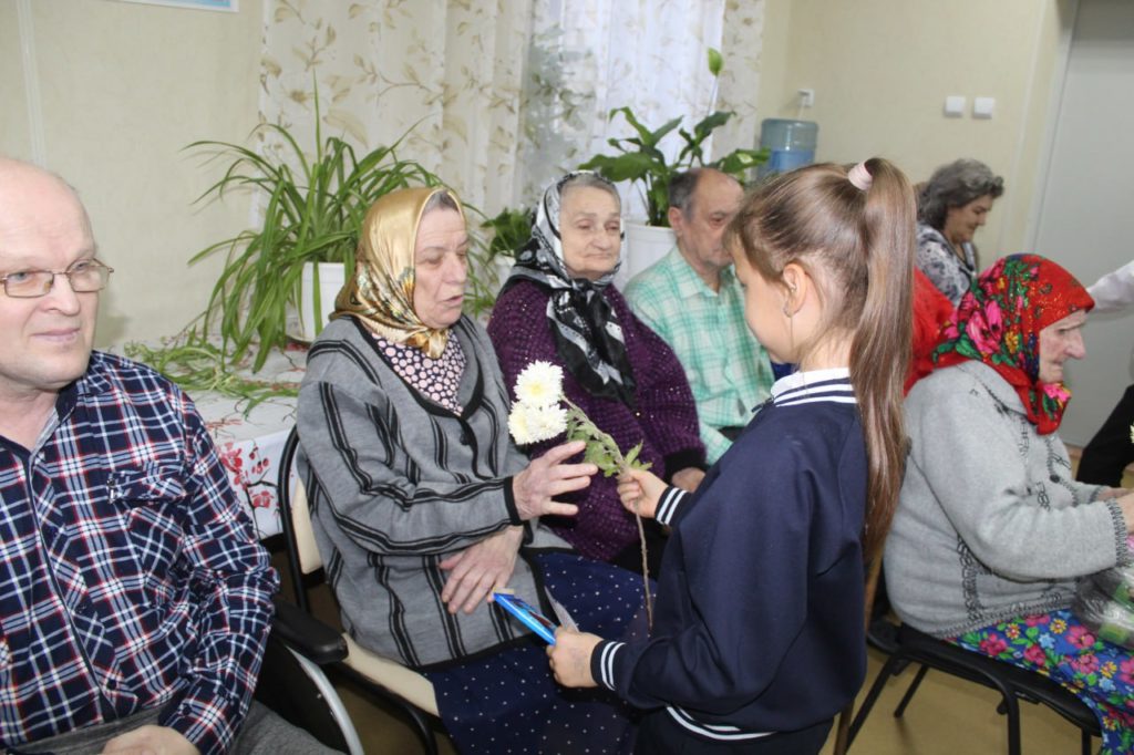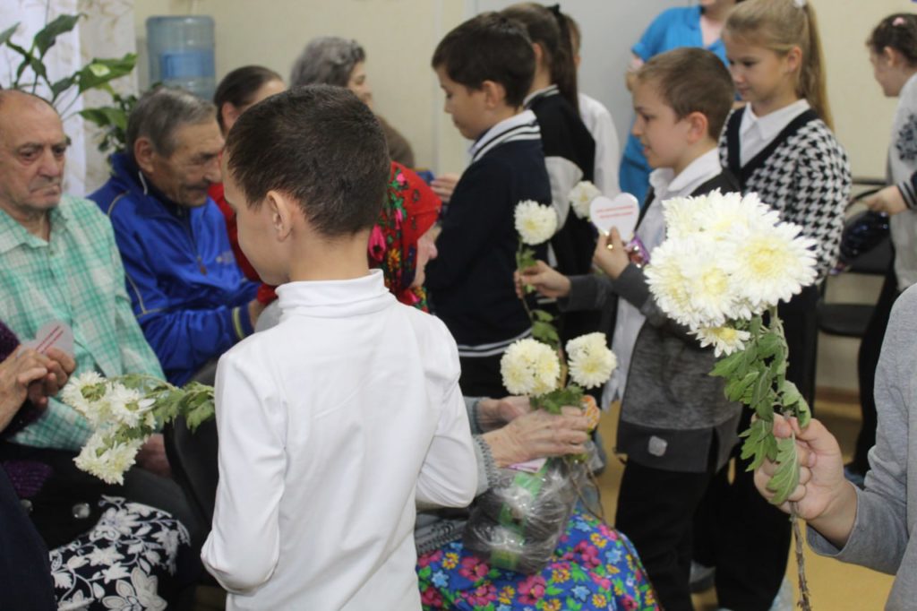 Ребята подготовили трогательную программу поздравления, исполнив для пожилых людей душевные стихи и теплые пожелания здоровья и благополучия.