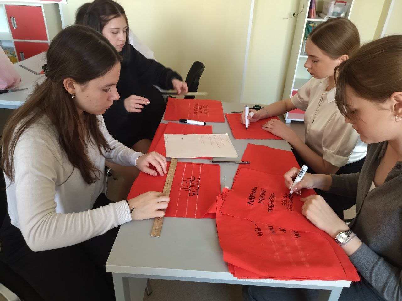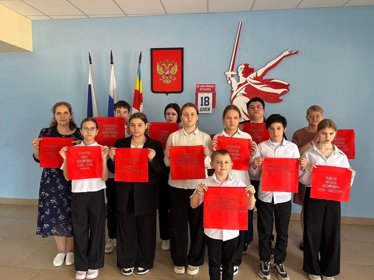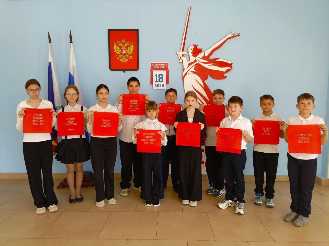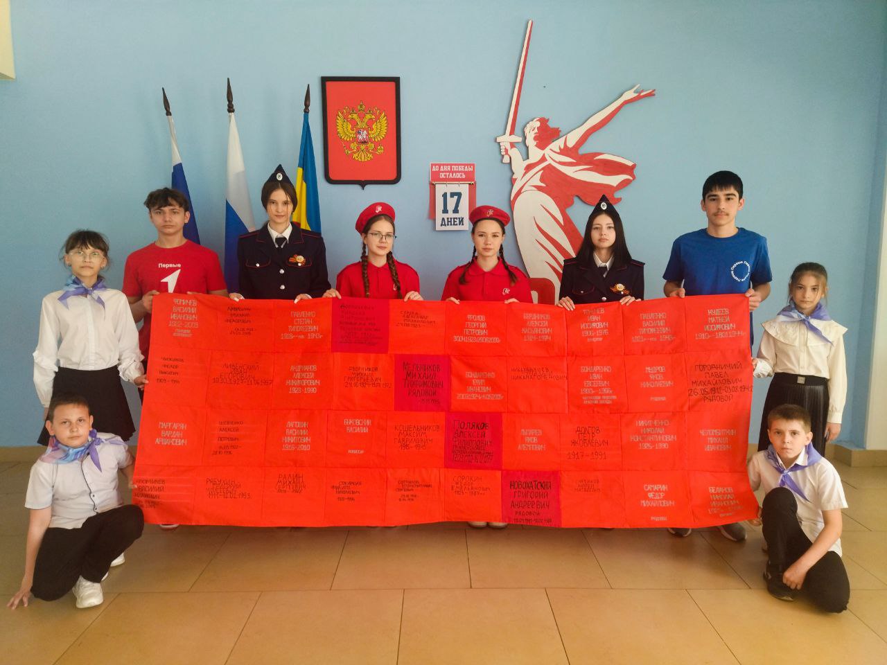 Полотно Победы: Учителя и активисты Заветинской школы 2 присоединились к региональной акции