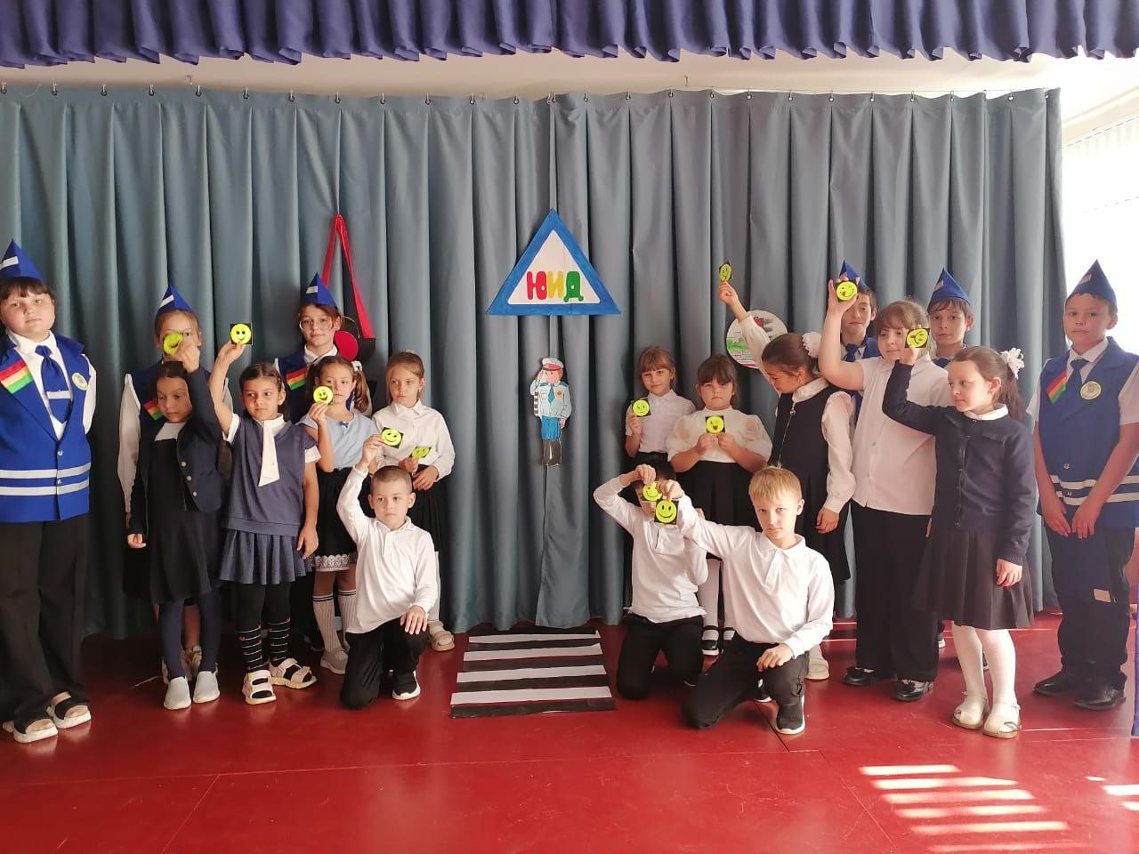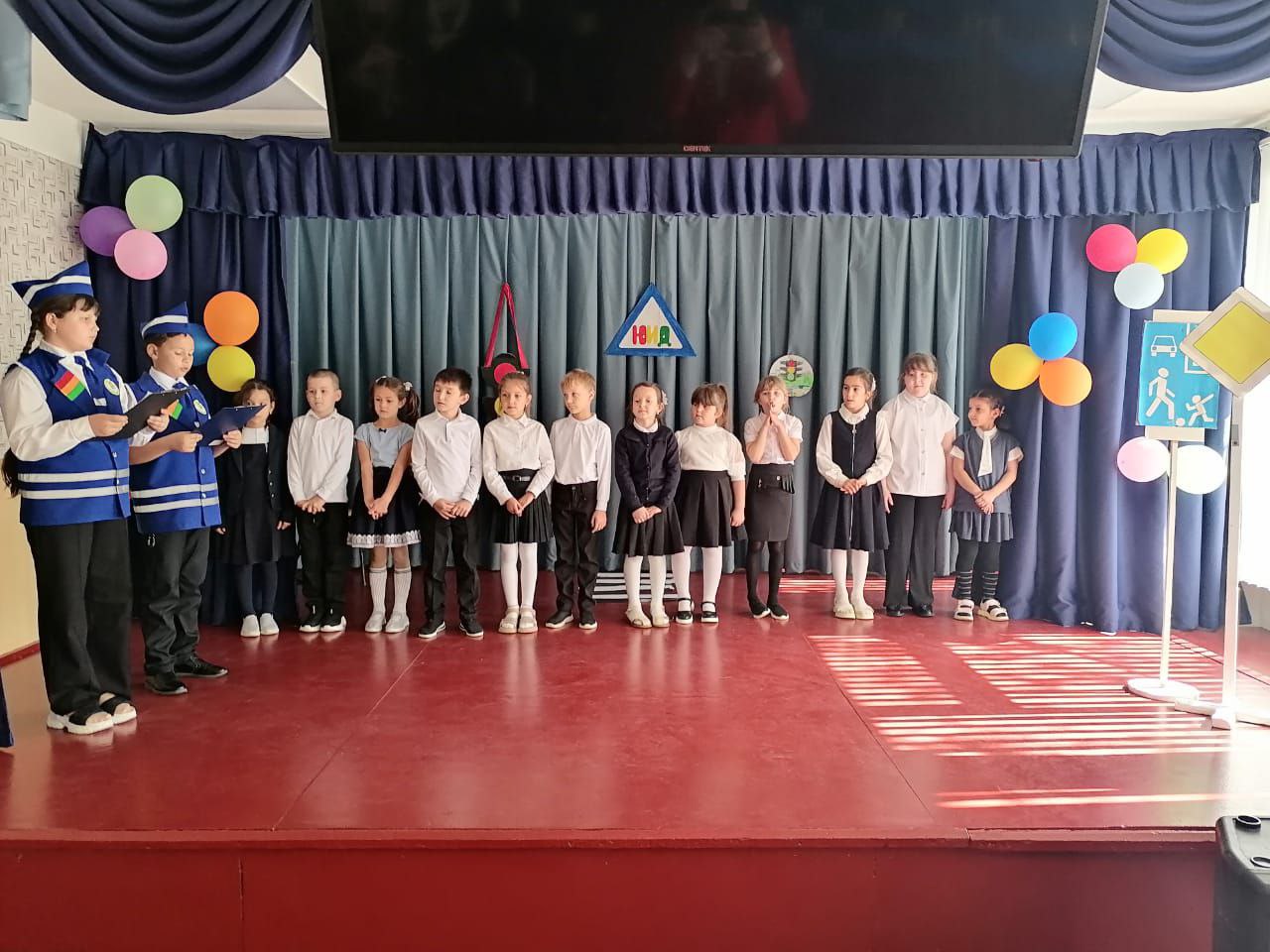 Для ребят подготовили познавательное представление, чтобы закрепить знания о дорожных знаках и правилах дорожного движения. Помощники из отряда рассказали им о том, как работают сигналы светофора и регулировщика. Интерактивная игра помогла первоклашкам лучше усвоить материал: они хлопали и топали в ответ на сигналы светофора.