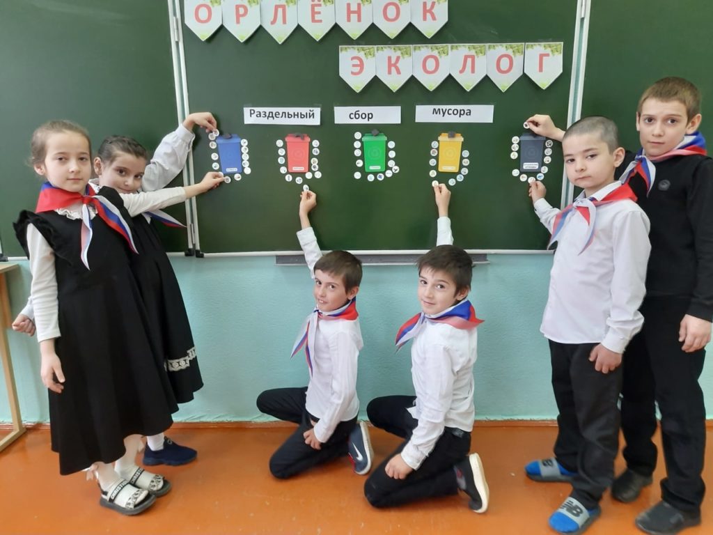 Внимание школьников обращают на необходимость бережного отношения к природе и окружающему нас миру. Беседуют о важности раздельного сбора мусора.