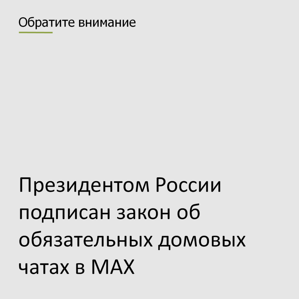 Президент России Владимир Путин подписал закон, который обязывает управляющие компании, ресурсоснабжающие организации (РСО) и региональных операторов по обращению с твердыми коммунальными отходами (ТКО) взаимодействовать с собственниками жилья через домовые чаты на платформе MAX. Конкретный порядок этого взаимодействия определит Министерство строительства и жилищно-коммунального хозяйства РФ.