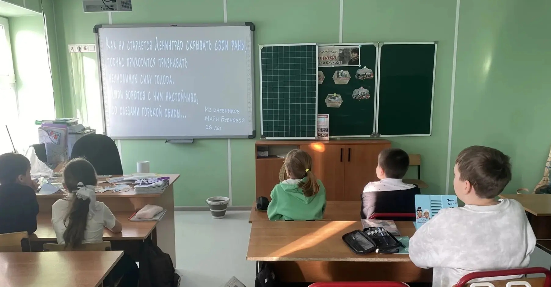На мероприятии дети услышали настоящие строки из дневников ленинградцев, узнали о детях, которые учились в бомбоубежищах, и о взрослых, работавших на заводах, несмотря на голод.