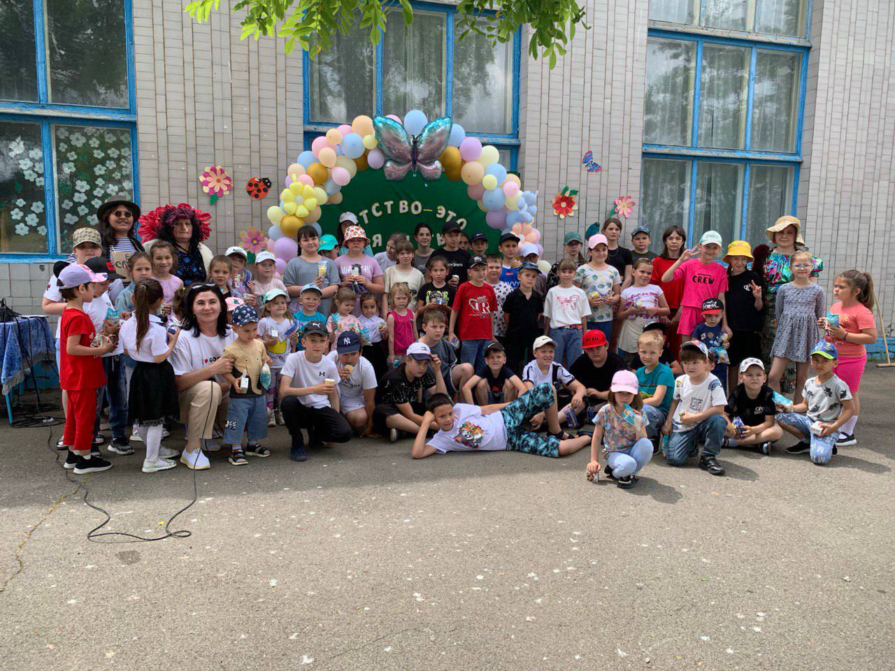 С раннего утра ребятню встречала громкая веселая музыка, а площадь украшенная яркими шарами, придавала всем праздничное настроение.