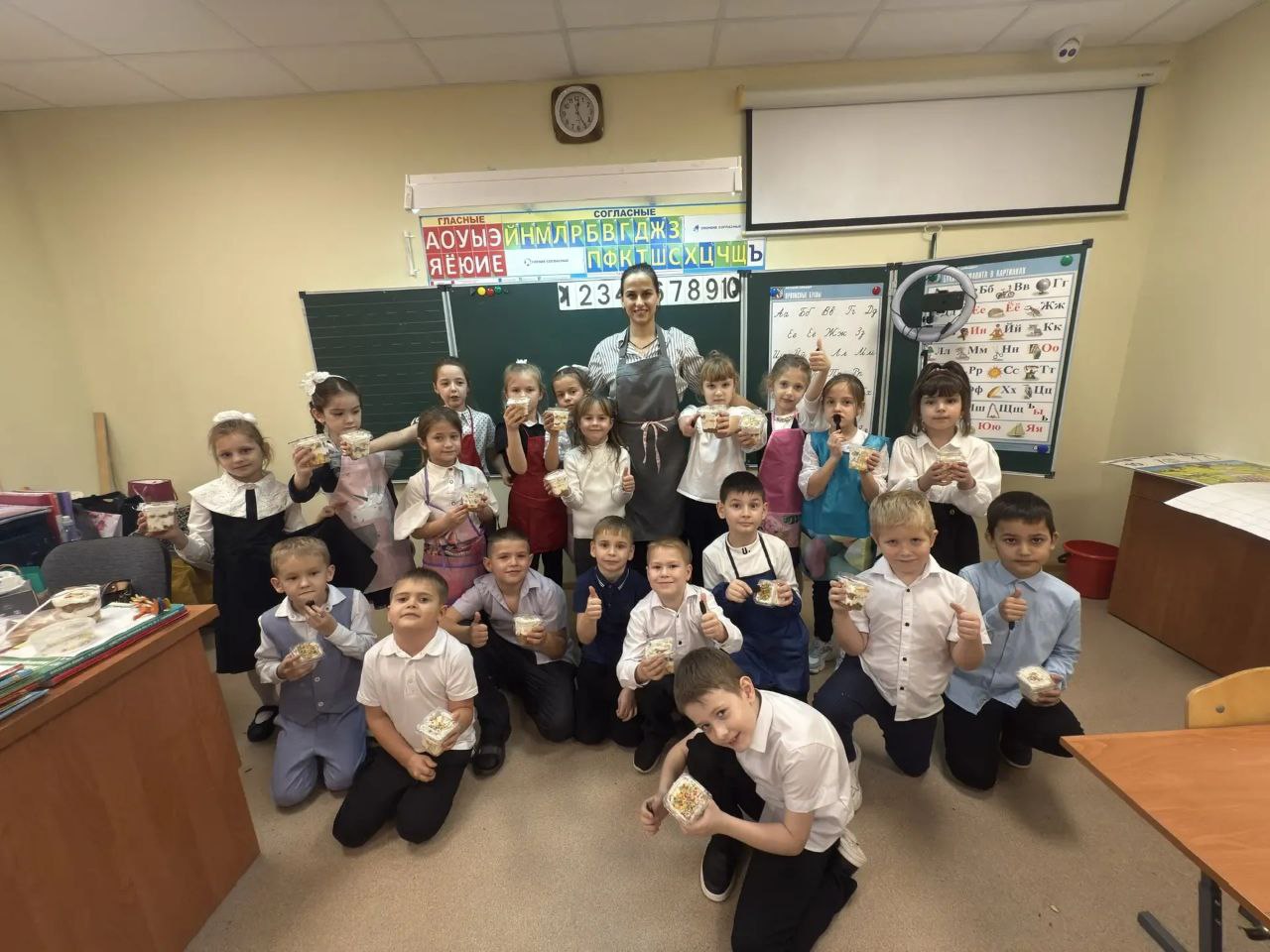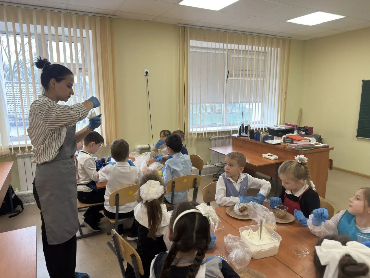 В Заветинской средней общеобразовательной школе № 2 опытный кондитер Юлия Старунова провела для первоклассников увлекательный мастер‑класс по созданию трайфлов в рамках профессиональной декады.