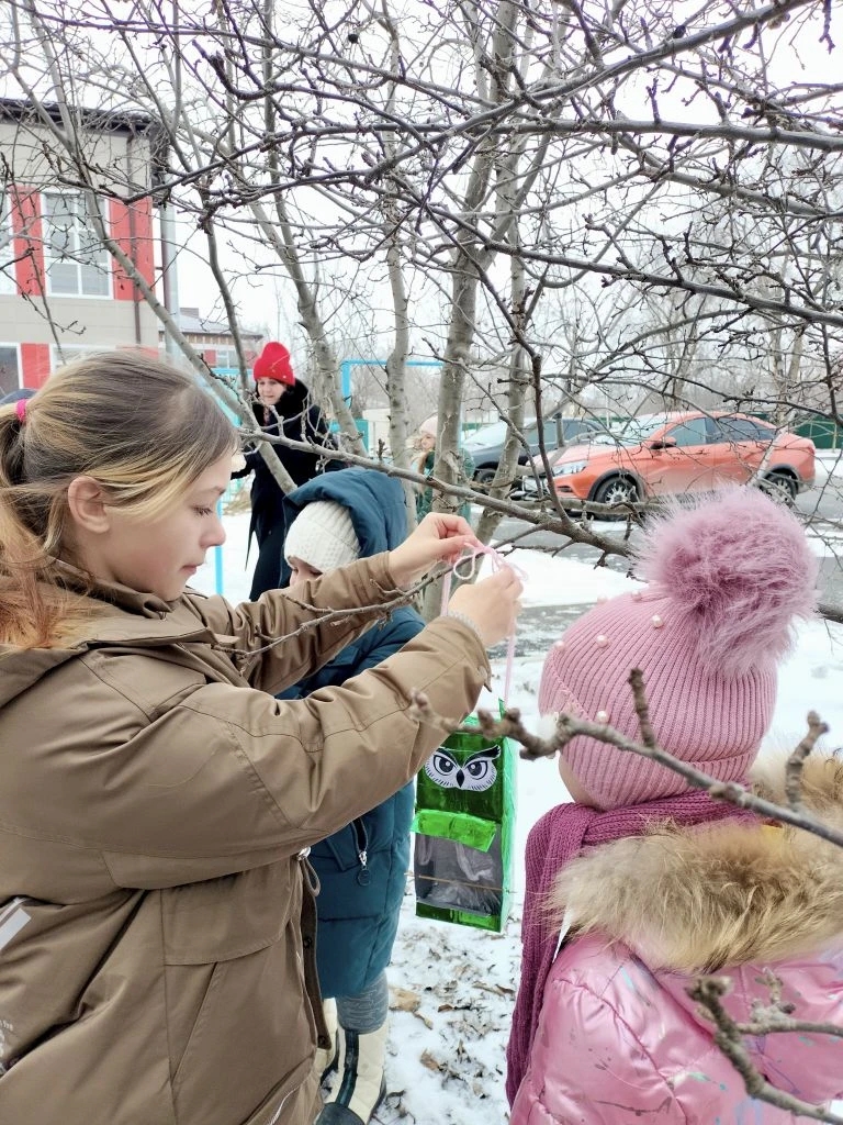 Чтобы превратить слова в дела, школьники вместе с родителями смастерили яркие кормушки из подручных материалов. Каждая — как маленькая зимняя столовая для птиц.