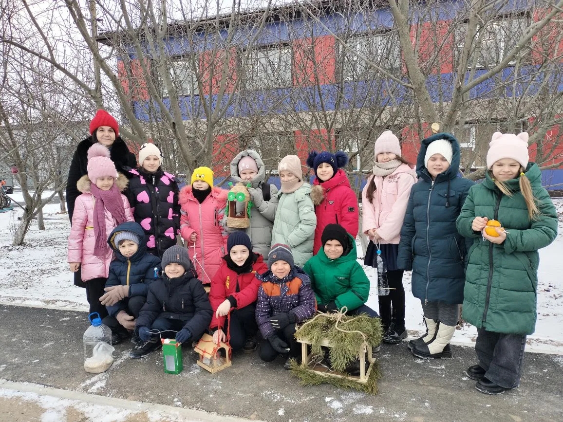 Чтобы превратить слова в дела, школьники вместе с родителями смастерили яркие кормушки из подручных материалов. Каждая — как маленькая зимняя столовая для птиц.