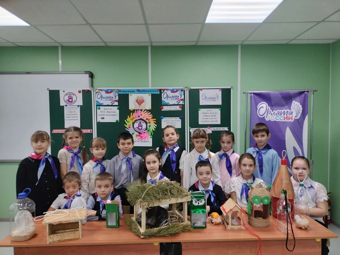 Активное участие в акции приняли юные волонтеры из «Движения Первых» — они помогли повесить кормушки на деревьях возле школы и во дворе.