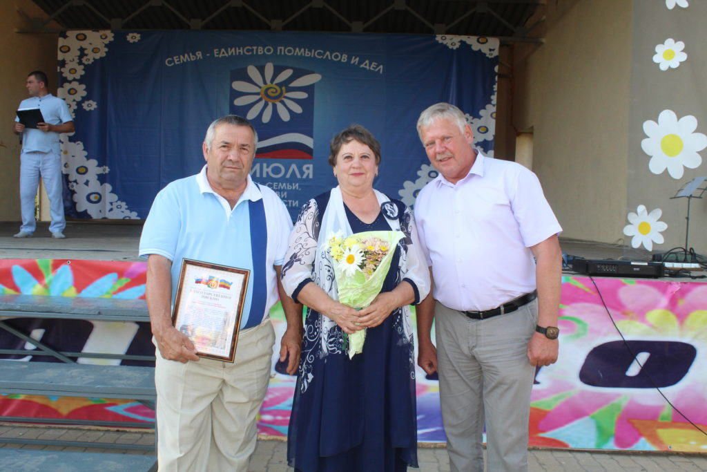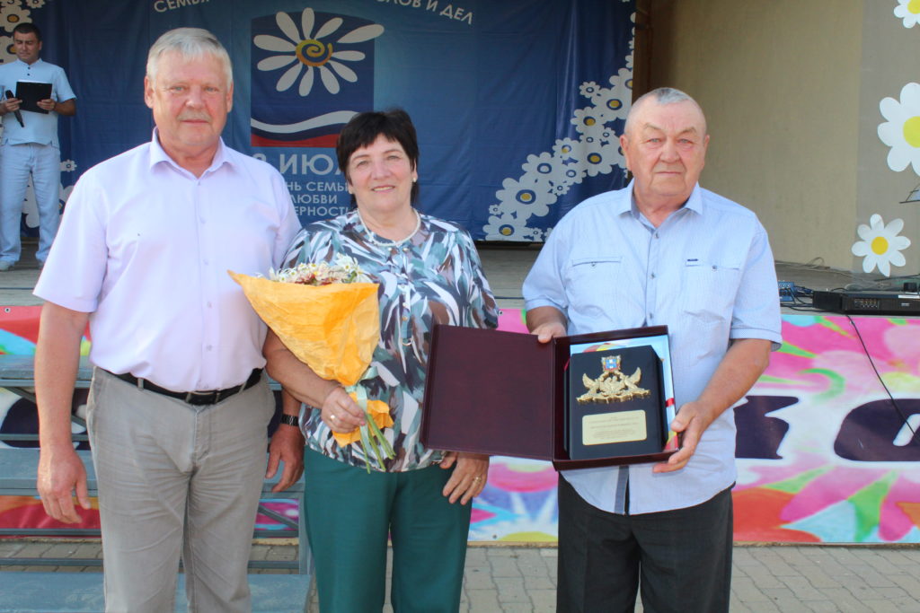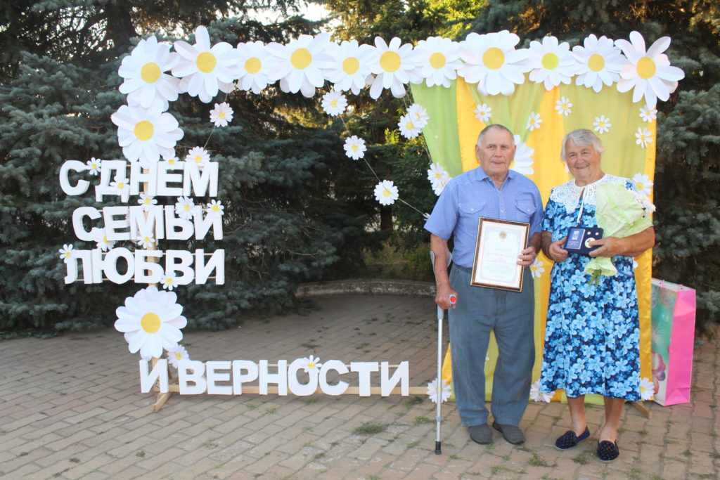Медаль «За любовь и верность» организационного комитета по проведению «Дня семьи, любви и верности в Российской Федерации» семьям Ливенским Виктору Афанасьевичу и Нине Ивановне из с. Федосеевки, семье Перепелицыных Александру Николаевичу и Любови Ивановне из с. Заветного, которые в текущем году отметили 55-ти летний юбилей свадьбы.