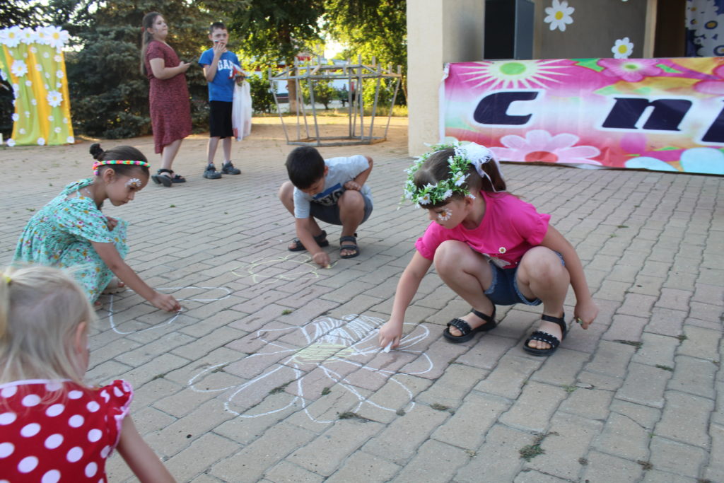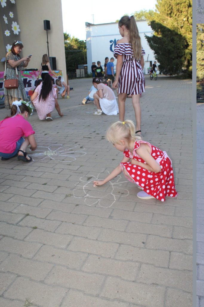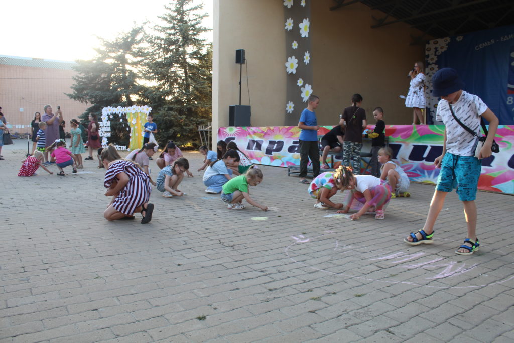 Доброй традицией стало рисование ромашкового поля, которое на центральной площади изобразили маленькие жители райцентра. Ромашка символизирует чистую, бескорыстную любовь.