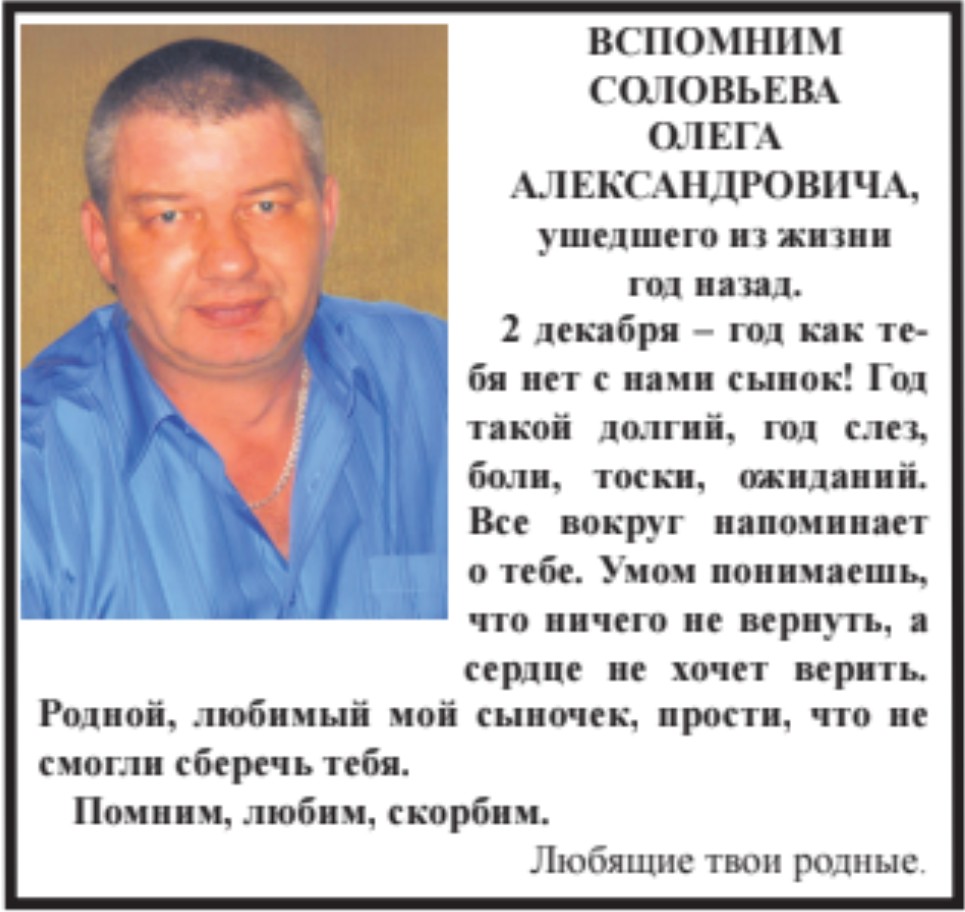 Новости Сердце не хочет верить 07.12.2025 16:59 Восход 0 153 Вспомним Соловьева Олега Александровича Теги: