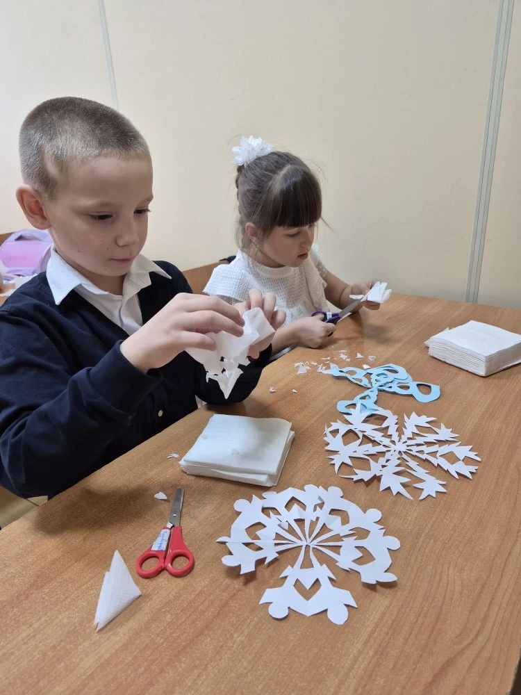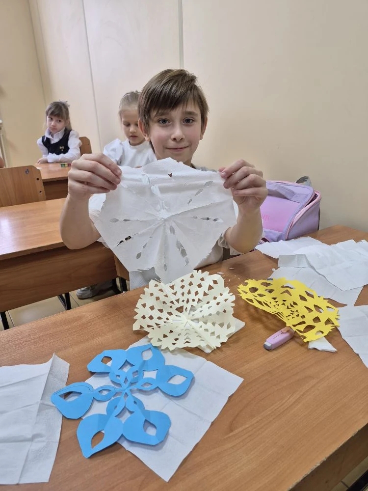 Ребята с увлечением осваивали искусство создания бумажных узоров, что позволило не только погрузиться в предновогоднюю атмосферу, но и по‑новому взглянуть на удивительное разнообразие настоящих снежинок. Каждая из них — уникальное творение природы, настоящее зимнее чудо, не имеющее аналогов.