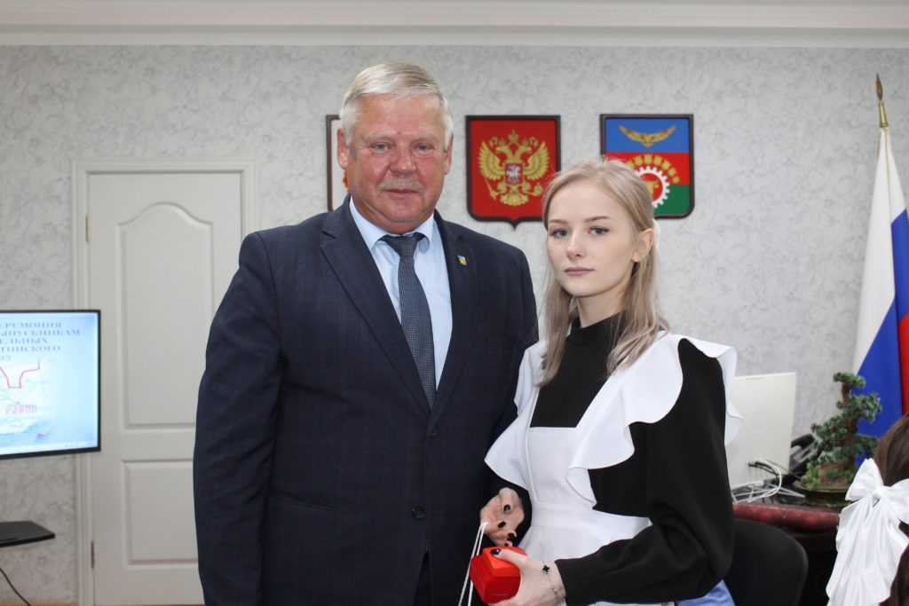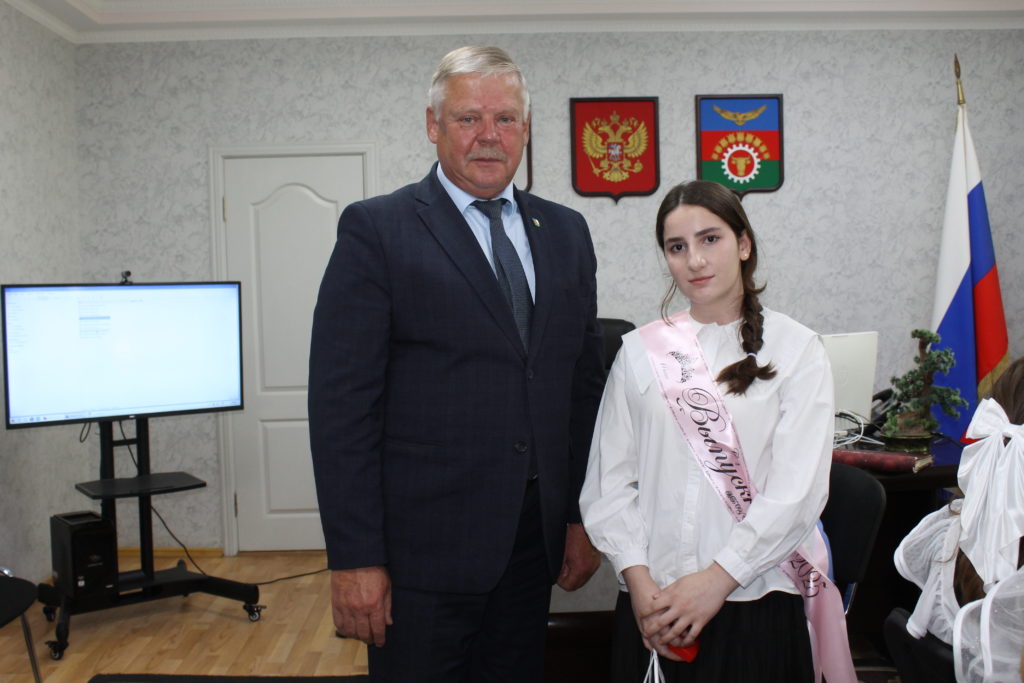 На торжественном приеме Юрий Величко, глава администрации Заветинского района, вручил медали «За особые успех в учении I степени» и «За особые успехи выпускнику Дона» выпускницам Заветинской СОШ №1 Анне Коптевой и Марии Романенко.