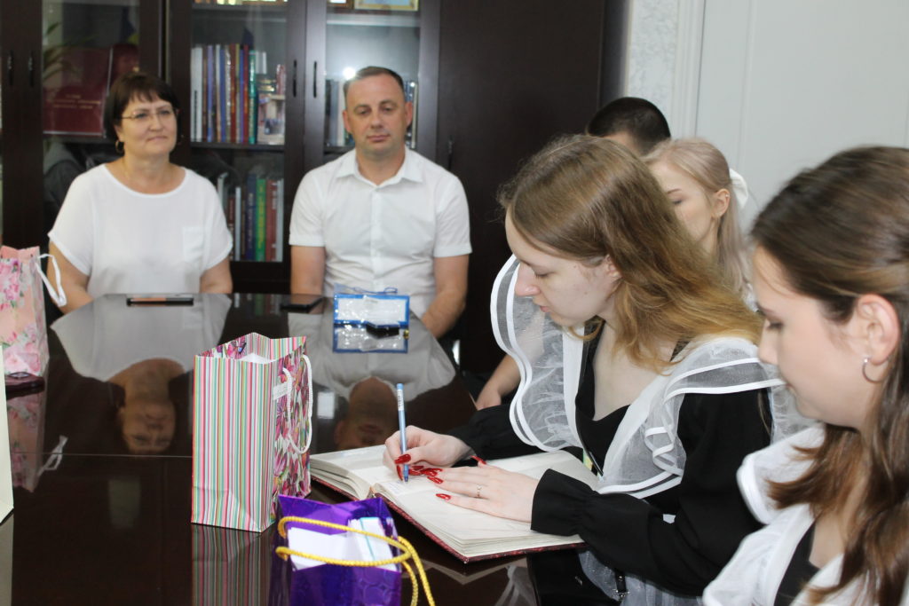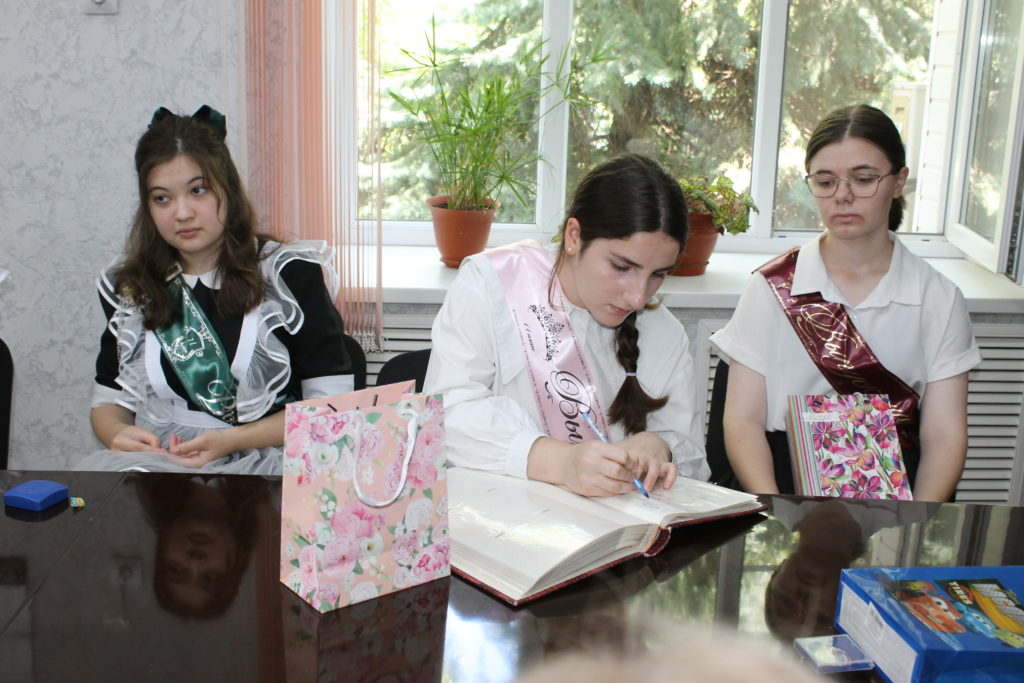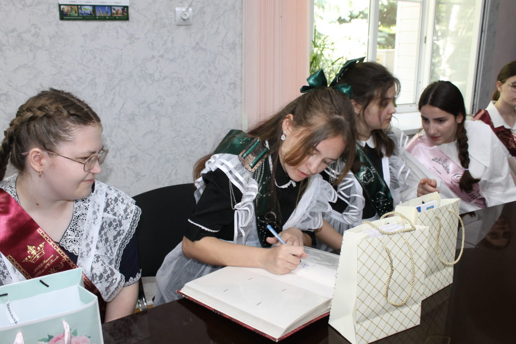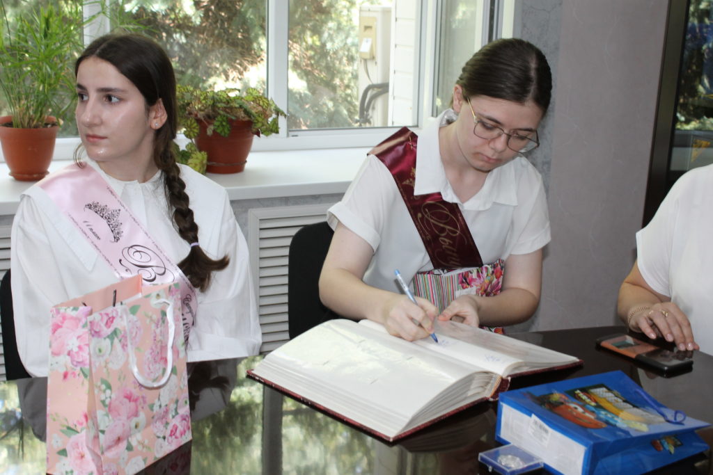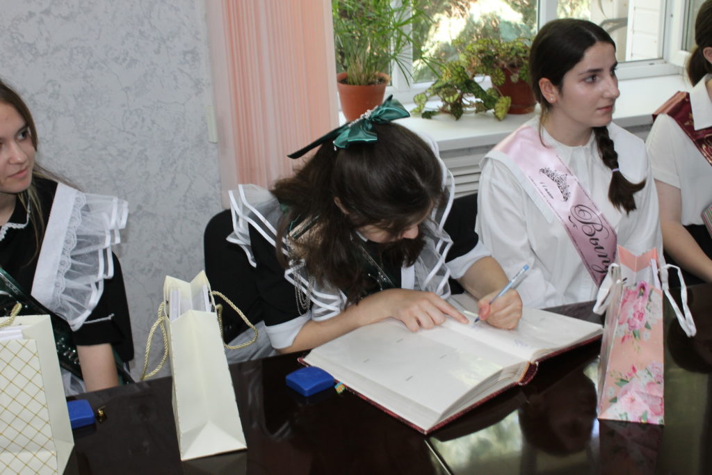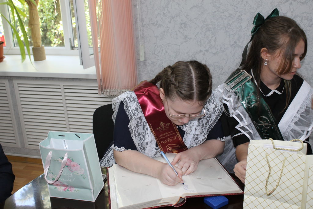В свою очередь выпускники обратились с ответным словом, подарили фото на память, рассказали, с какими профессиями хотят связать свою будущую жизнь, а также оставили свои пожелания в «Золотой книге побед».