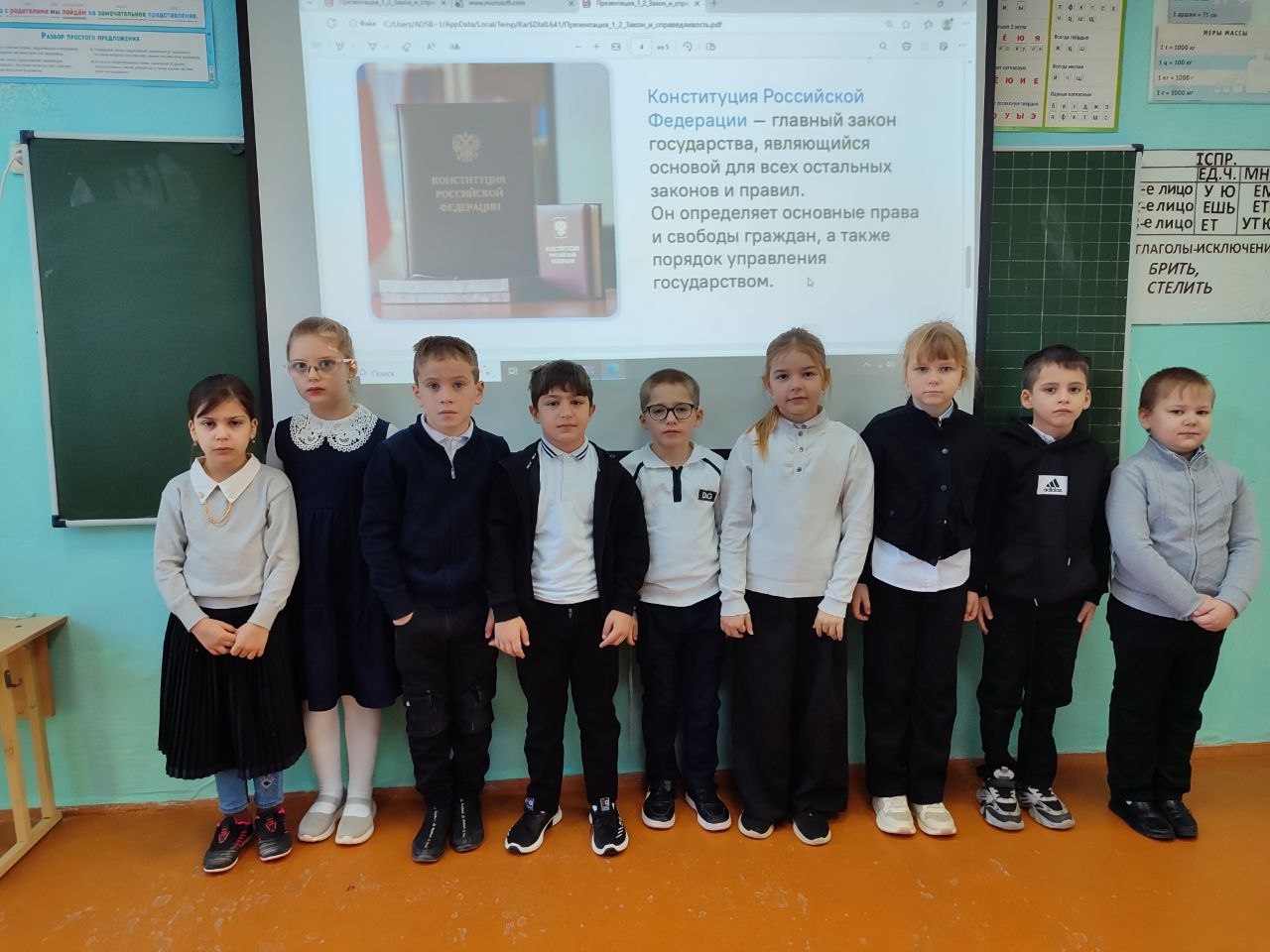На прошлой неделе ученики Комсомольской школы погрузились в тематику «Разговоров о важном». На этот раз разговор шел о законе и справедливости — в честь приближавшегося Дня Конституции Российской Федерации.