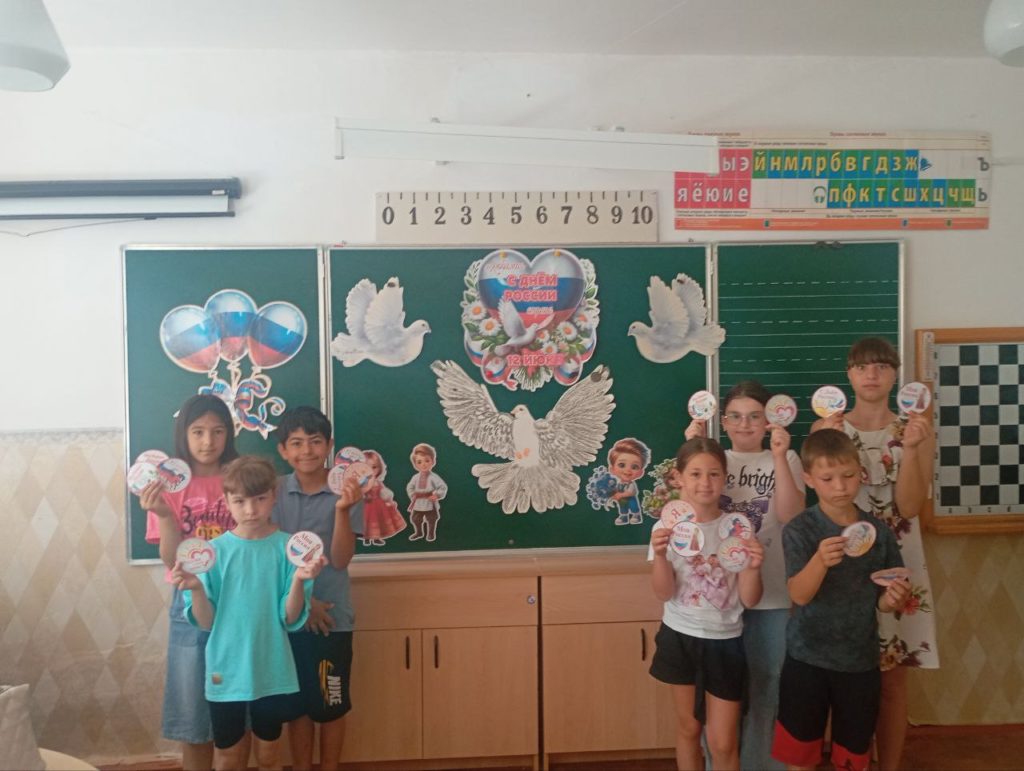 Провели акцию «Я — россиянин». Совместно с воспитателями изготовили поздравительные эмблемы и вручили жителям хутора. Изготовили эмблемы «С днём России». Экскурсия в музей (в рамках лагеря) «Изучение казачьего быта». Руководитель: Зайцева А.П. А также оформили «Окна РОССИИ». Ребята отнеслись к проекту с душой. Готовили проект в течении нескольких дней.