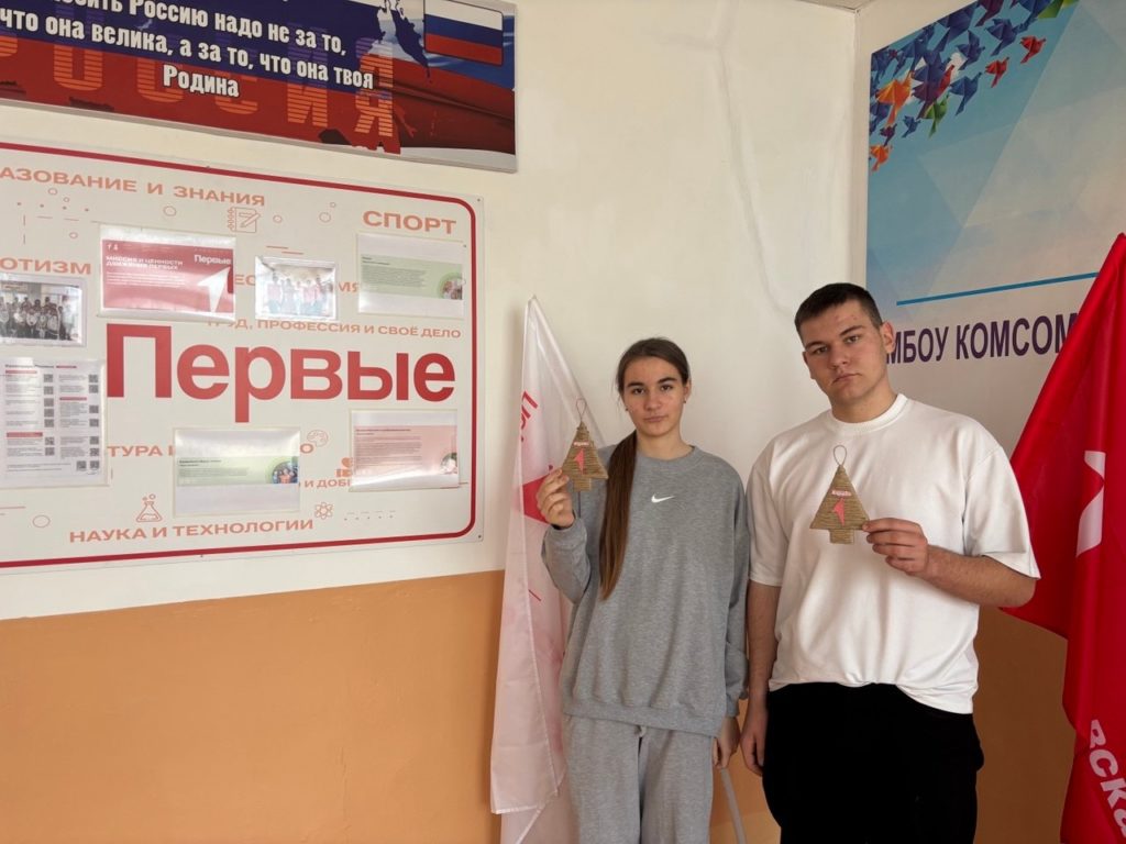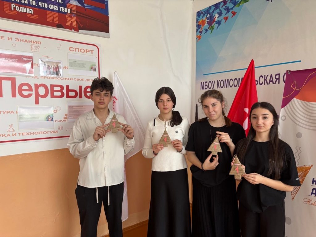 Участники первичного отделения Движения Первых Комсомольской школы вместе с советником директора по воспитанию присоединились к праздничной акции «Российский Детский Дед Мороз».