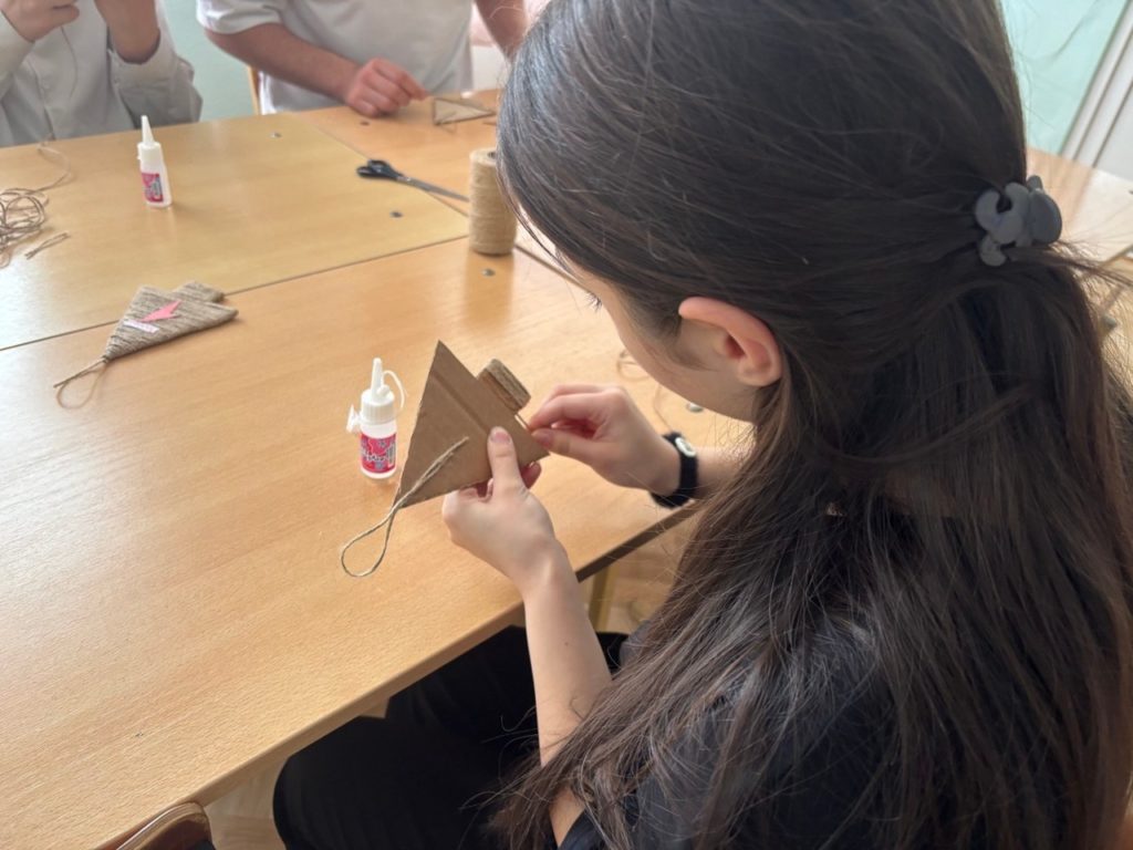 Юные активисты с энтузиазмом освоили технику изготовления оригинальной новогодней декорации — ёлочки из шпагата. В процессе творчества каждый из ребят смог в полной мере раскрыть свой художественный потенциал: созданные ими поделки получились по‑настоящему неповторимыми. В каждой миниатюрной ёлочке отразились индивидуальность автора, тепло его рук и предвкушение новогодних чудес.