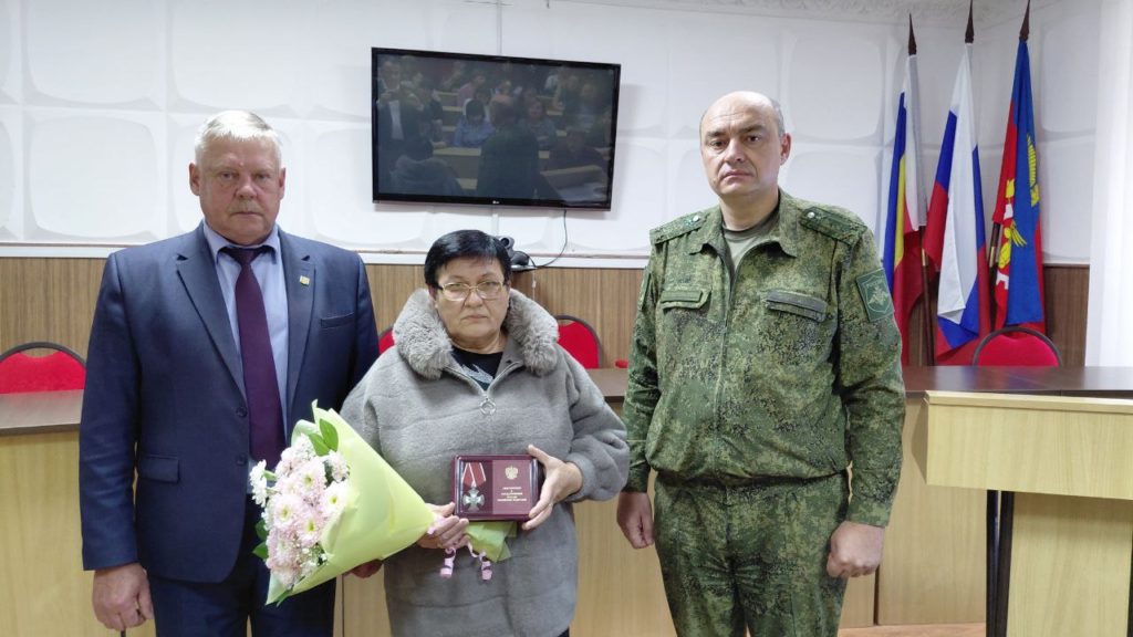 Высокую правительственную награду вдове участника спецоперации вручил военный комиссар Зимовниковского, Дубовского, Заветинского и Ремонтненского районов Ростовской области Максим Фенев.